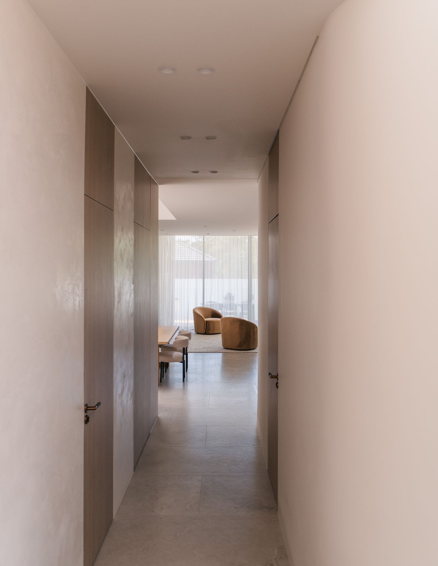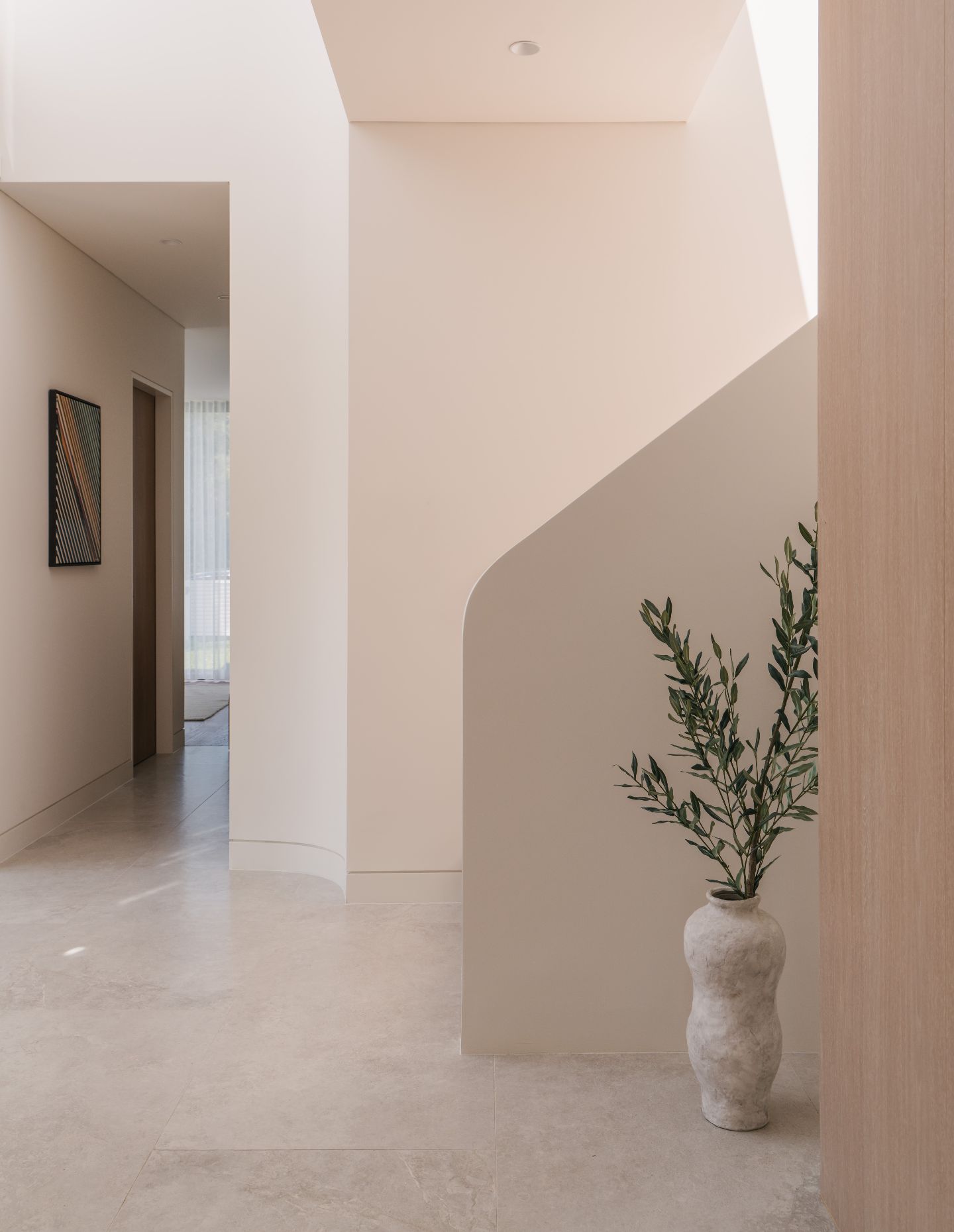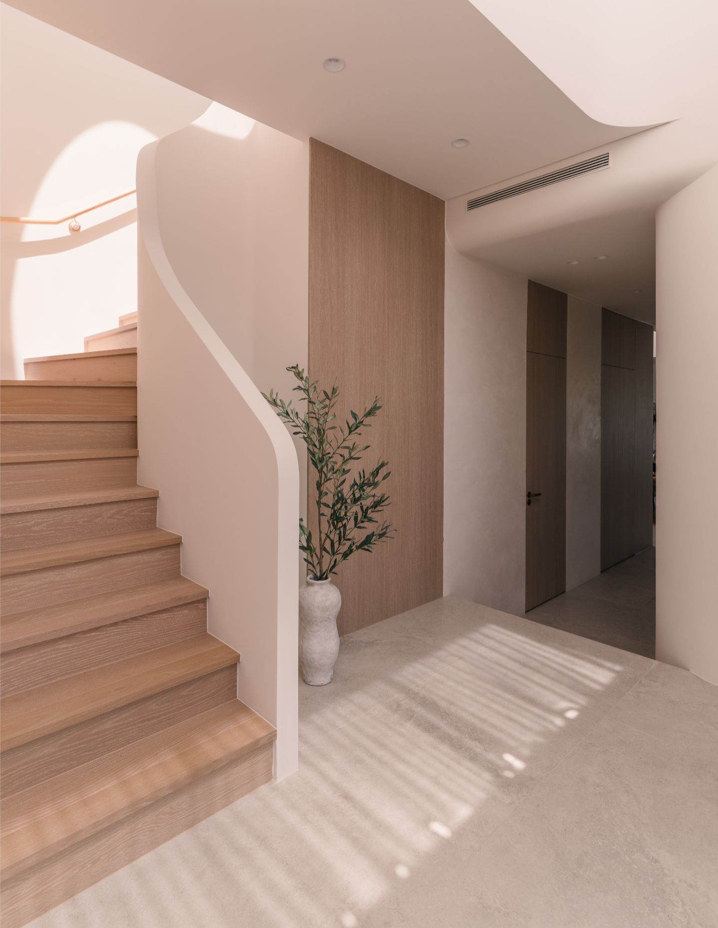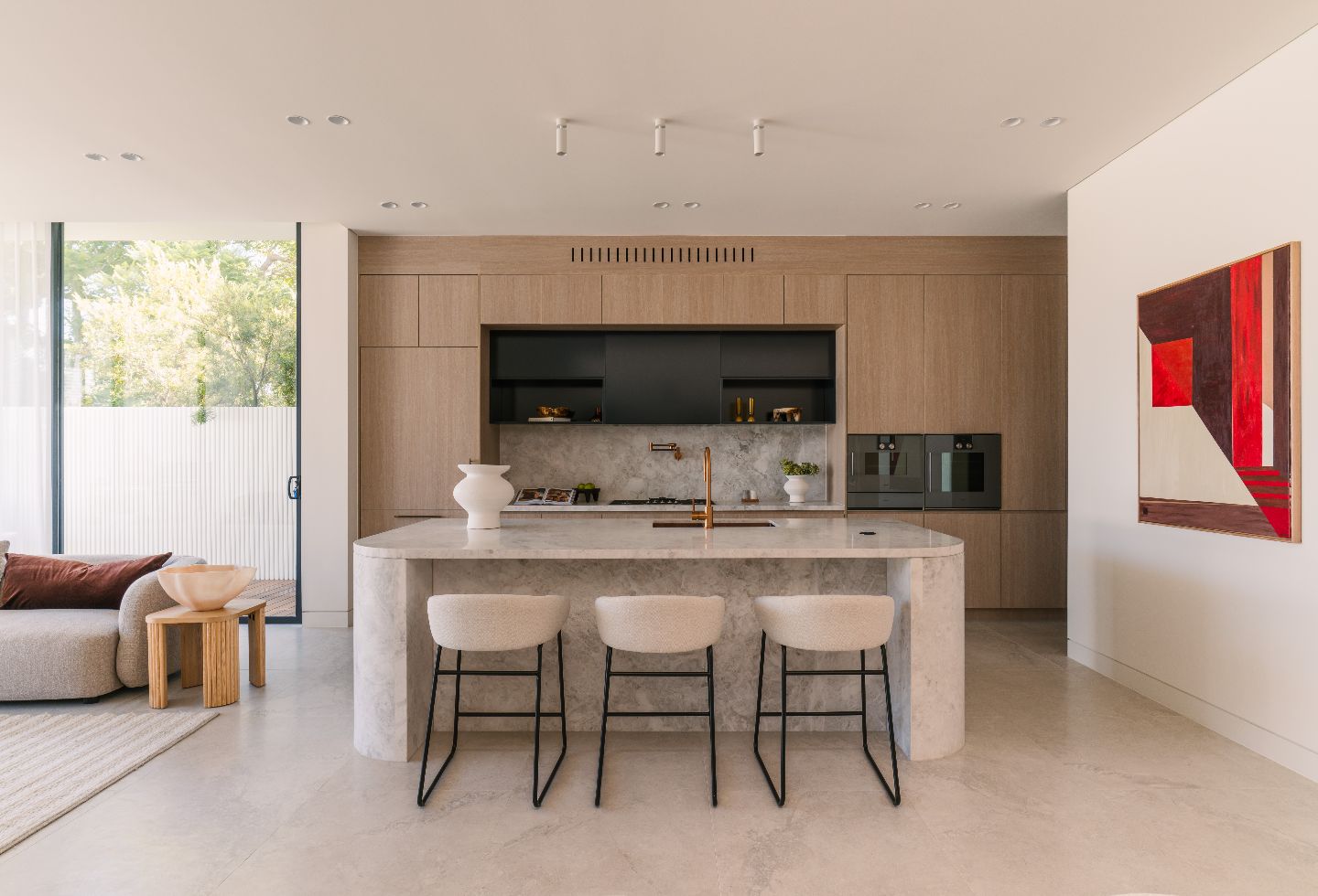 Quality is the hallmark, with natural timber accents throughout. Sculptural restraint is demonstrated in curved architectural elements including arches and the central staircase. These introduce softness and an organic identity without becoming theatrical.