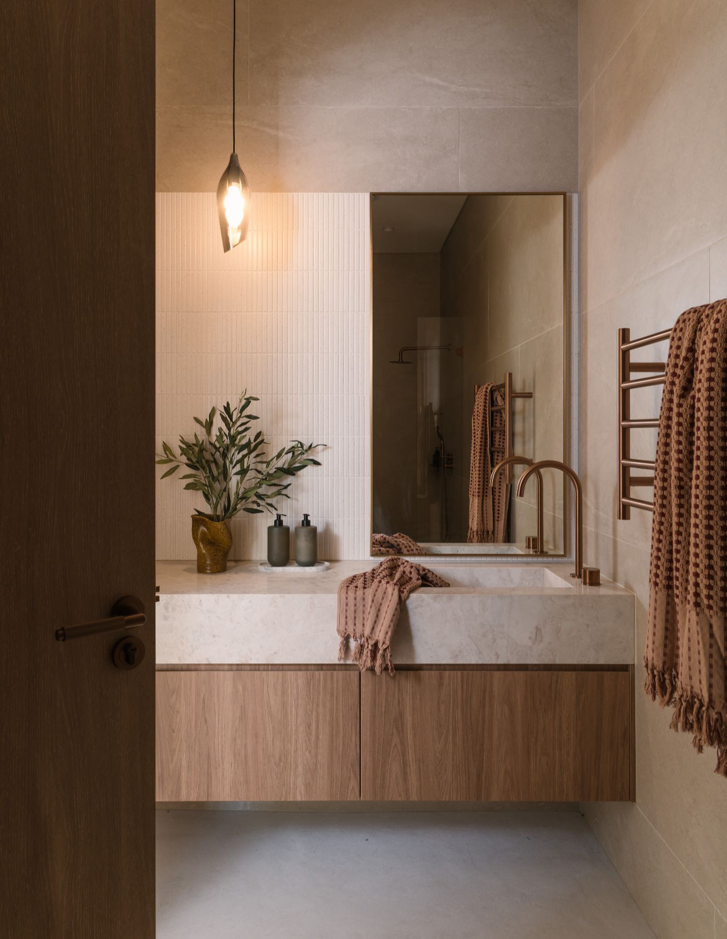 Ambit Curator’s approach to the materiality palette mirrors the spatial harmony between light and dark, open and enclosed, activation and restfulness. The tonal variations with their emphasis on naturals and neutrals invite the imagining of personal touches and flourishes.