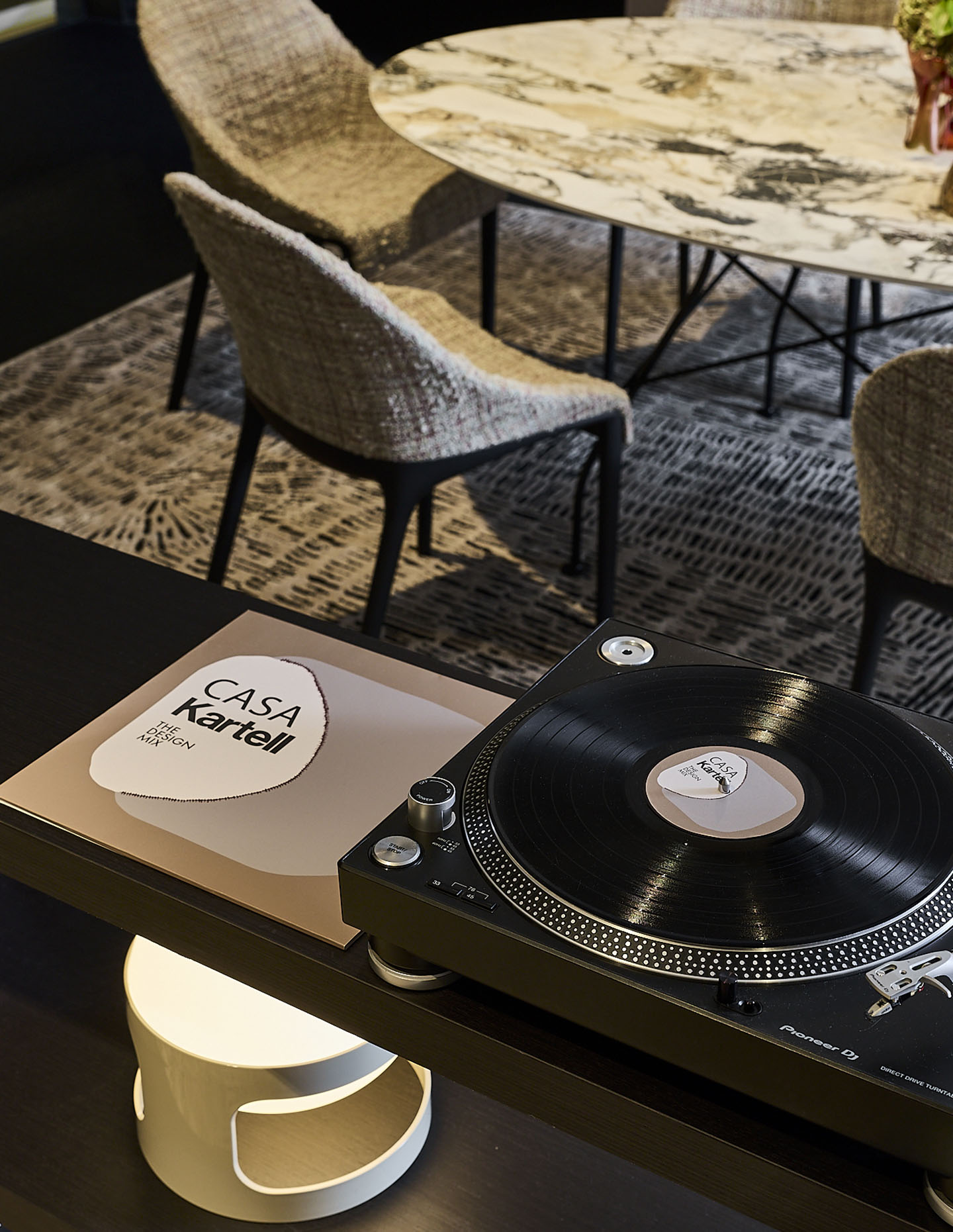 With Palomba in town, the installation reads as both a showcase and a statement of intent: Kartell not simply as manufacturer, but as orchestrator of atmosphere, ritual and contemporary living.