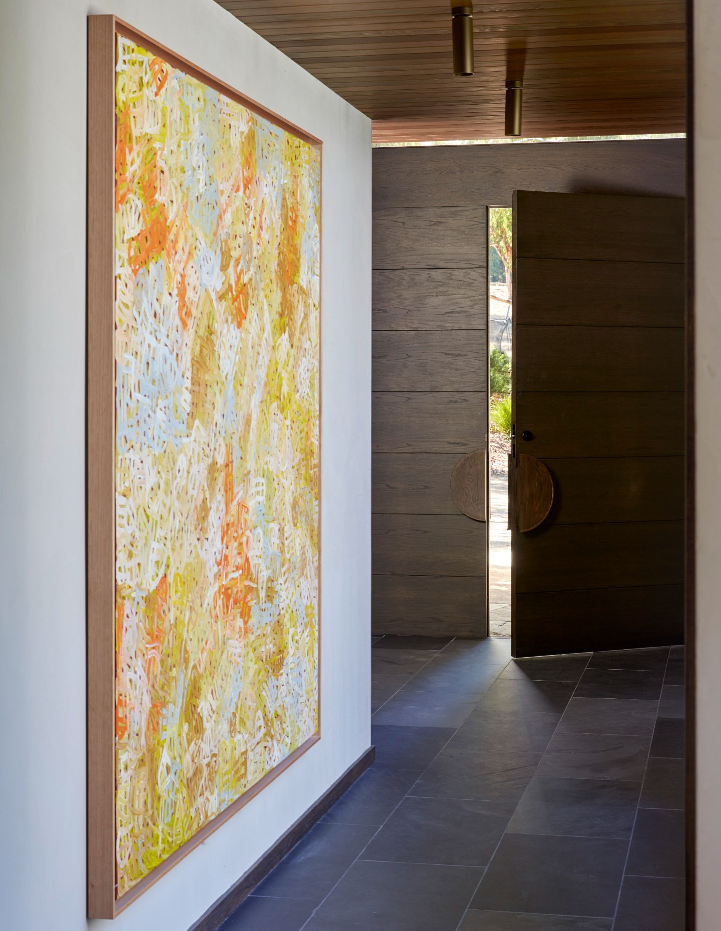 While a clear design language runs through the studio’s work, each project remains resolutely site- and client-specific. One early milestone was Yarra Valley House, completed in 2013, a large residence that allowed Hing to expand her material and spatial vocabulary in collaboration with skilled builders and artisans. Polished plaster ceilings, slate floors, tiled benches and carefully calibrated screening created a contemporary home that remains fresh more than a decade later. Hing continues to design for the same client today.