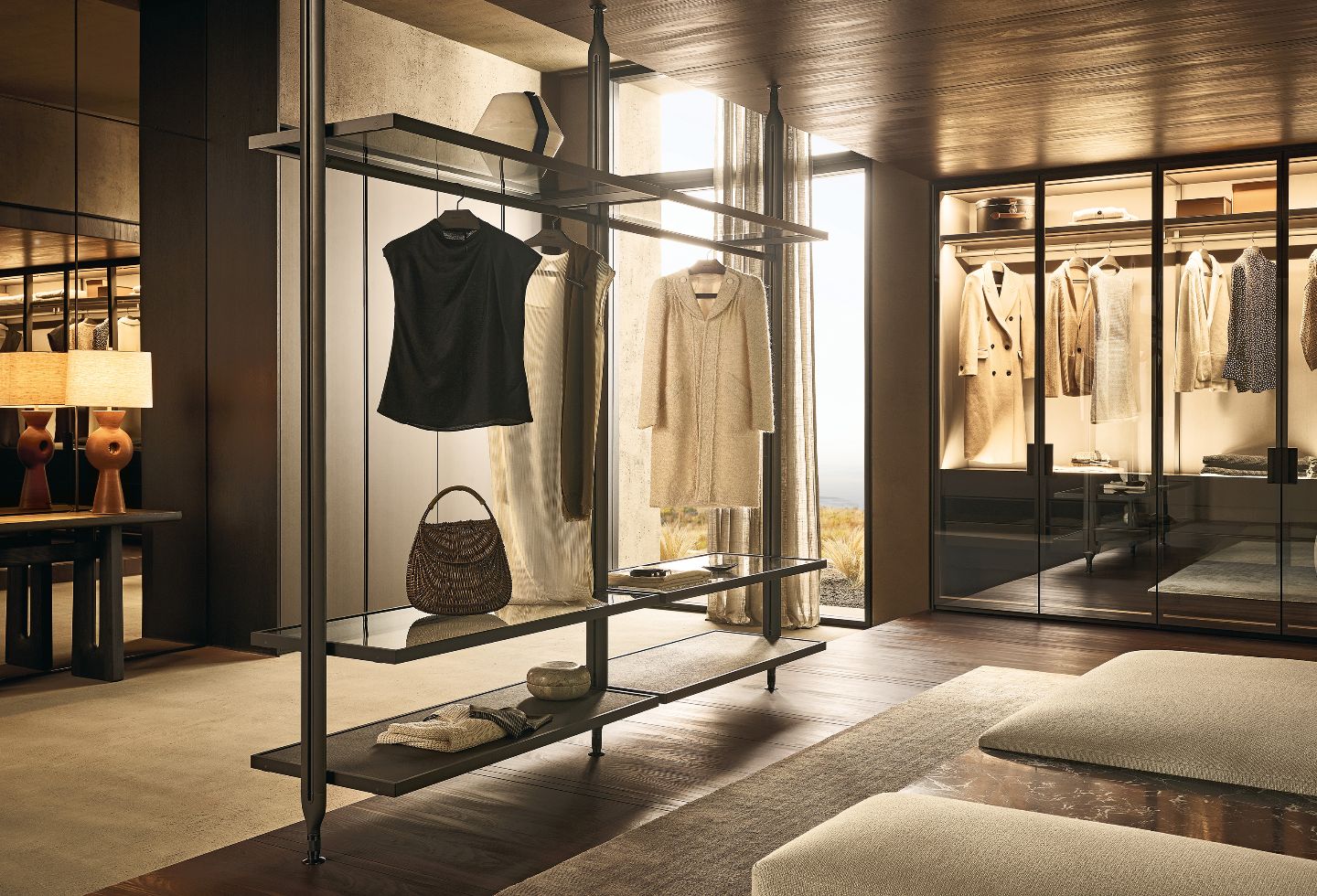 While Lexington introduces a different character again – defined by its aluminium frame and glass elements. Here, transparency and structure work together to create lightness, while still maintaining the rigour Poliform is known for.