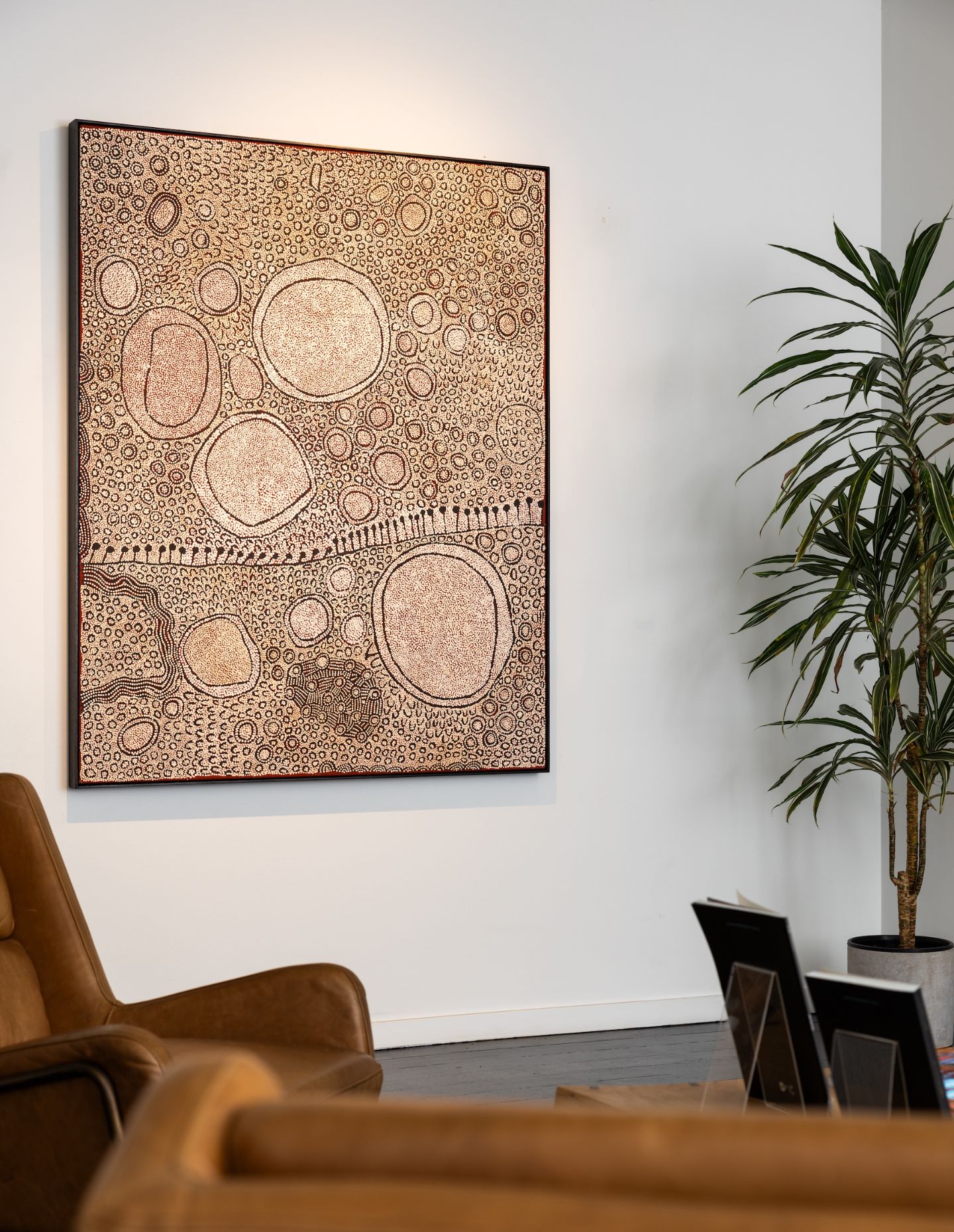 It is also now increasingly common to see interior designers and stylists incorporating Australian First Nations art into residential homes and public interiors. This growing trend reflects a more thoughtful and sophisticated approach to imbuing our living spaces with a unique sense of place. Contemporary Australian First Nations art complements and contrasts a broad spectrum of architectural styles. Beyond its striking aesthetics, however, there is also an appreciation of the rich cultural narratives and spiritual significance it contains. This trend has also seen a rise in designers and collectors embracing the importance of ensuring that the artwork they acquire has been sourced ethically.