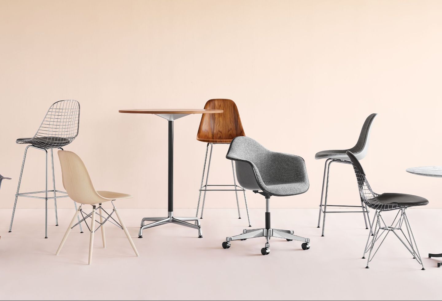 For Demetrios, then, the very idea of good design implies a never-ending refinement and improvement. The Shell Chair again provides the perfect demonstration, having been anything but static over its three-quarters of a century in production. In 2022, for example, its materiality was updated to 100 per cent post-industrial recycled plastic, with new colours to boot. Previous iterations introduced fibreglass and single-piece moulded wood, resulting in there being more than two million unique configurations available.