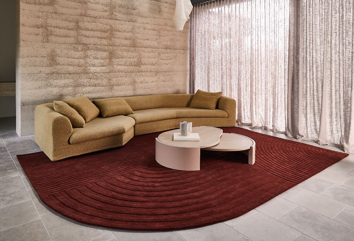 Where Elan & Earth becomes especially compelling is in its bespoke offering. Any rug in the range can be resized, reshaped or recoloured to suit the architecture it sits within – long, narrow runners for circulation spaces, generous pieces for open-plan living, or softly curved profiles that echo a bay window or rounded joinery. Designers can also nominate fibre blends and select the weave construction that best suits performance needs. It makes for rugs that feel tailored to their environment.
