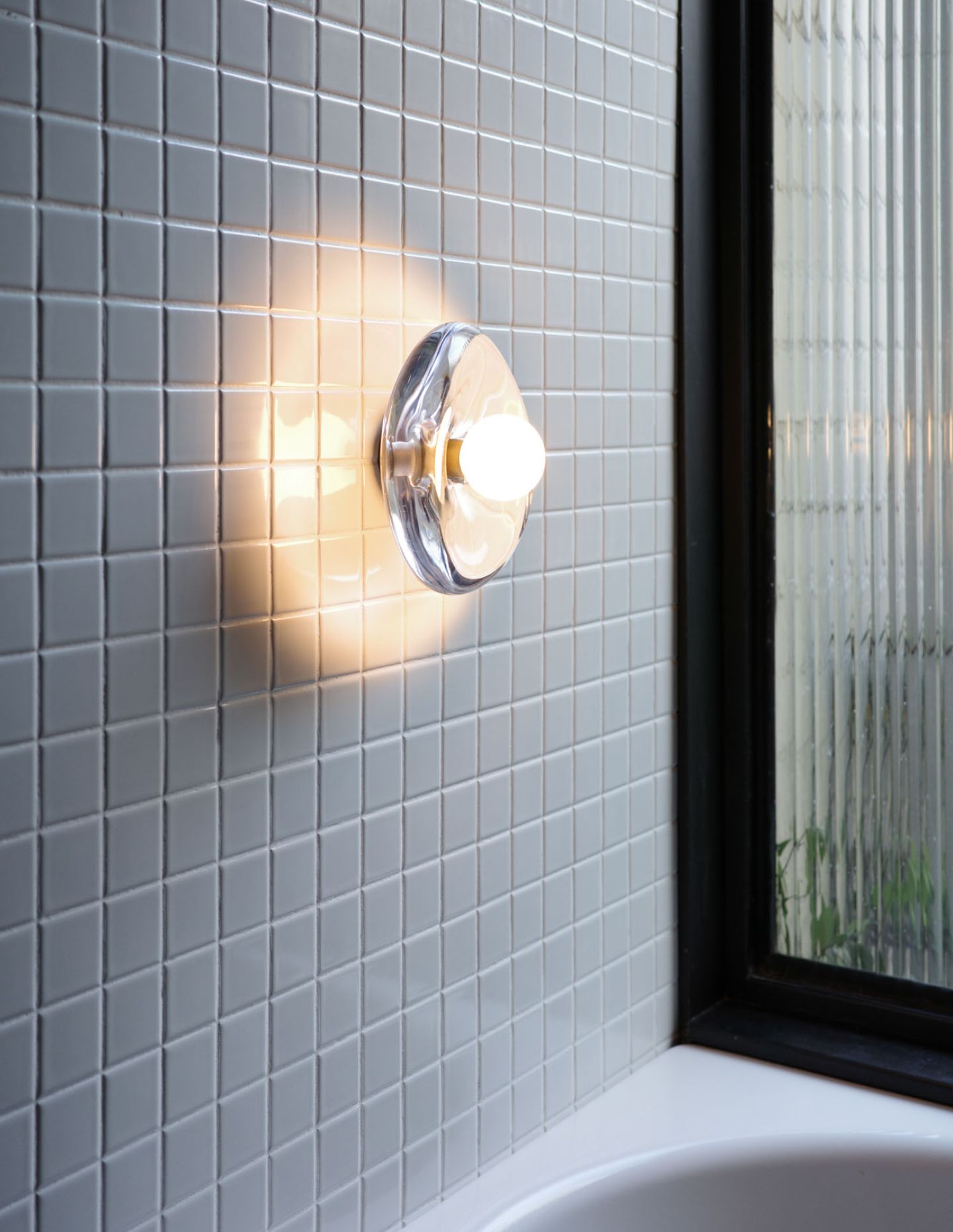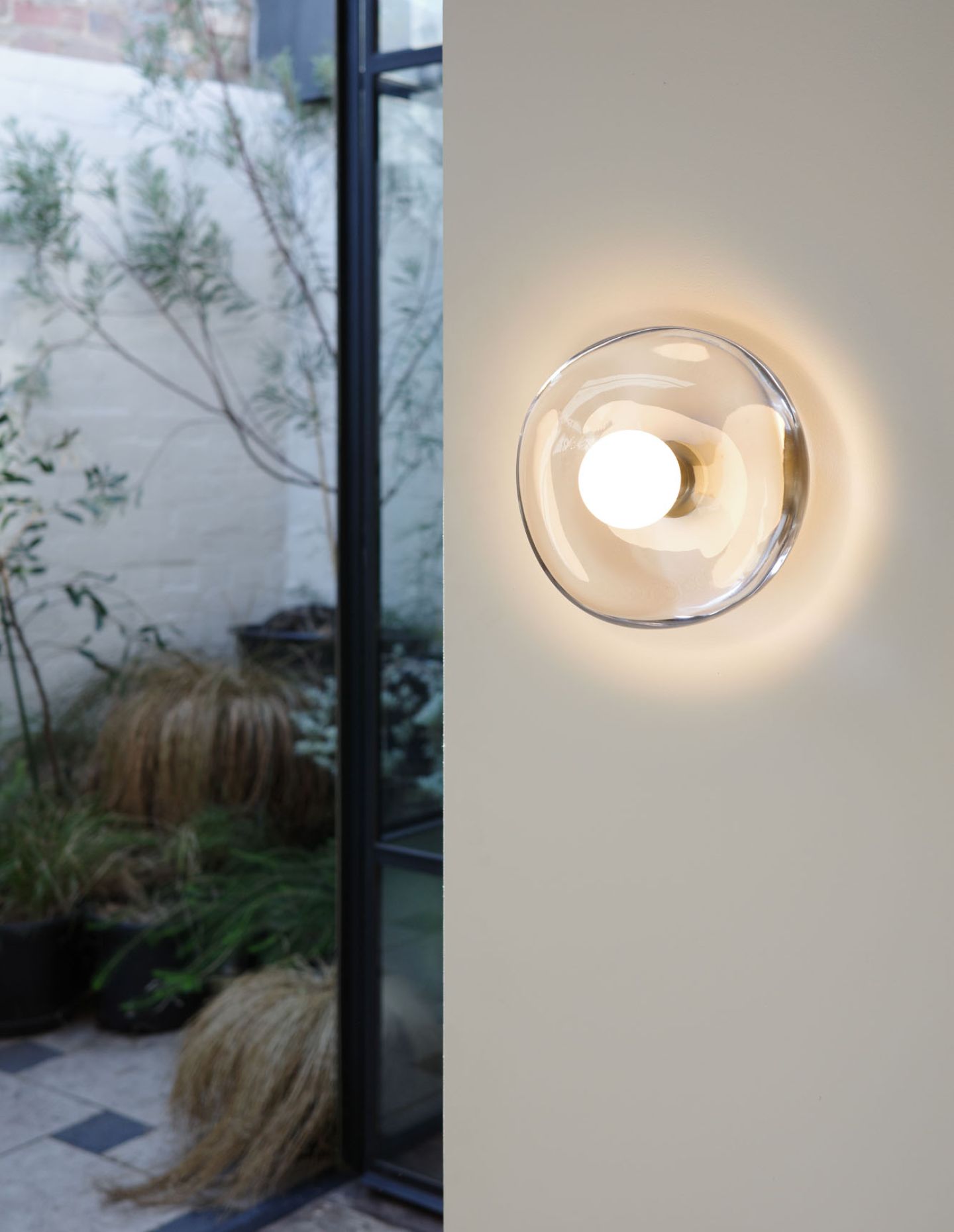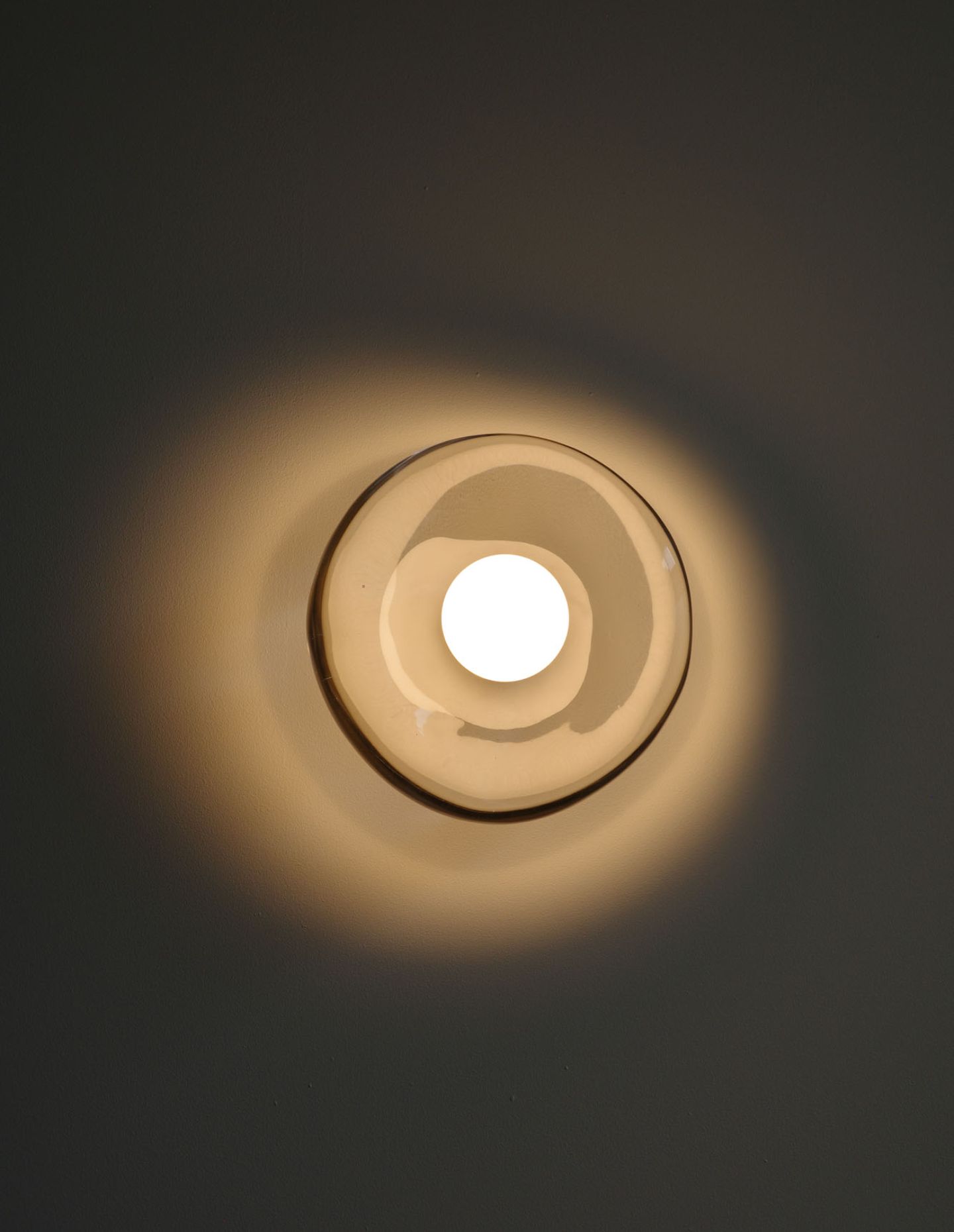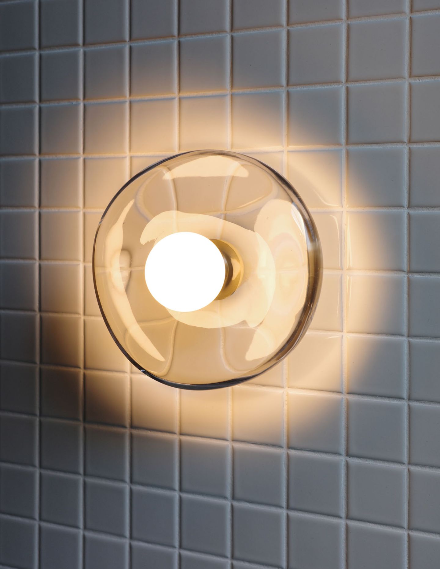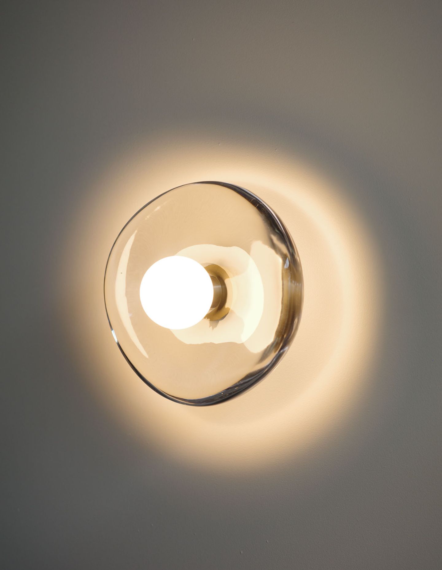 Each Gem Wall Light is formed from a single cast-glass piece. During the casting process, air bubbles, flowing streaks and subtle distortions are intentionally preserved, ensuring that no two lights are identical. The finishing stage is equally considered. After molten glass is introduced to the mould, highly focused heat is applied using an oxyacetylene torch to achieve an even surface, before the piece is hand polished. The result is a lighting object that balances utility with a strong material presence.