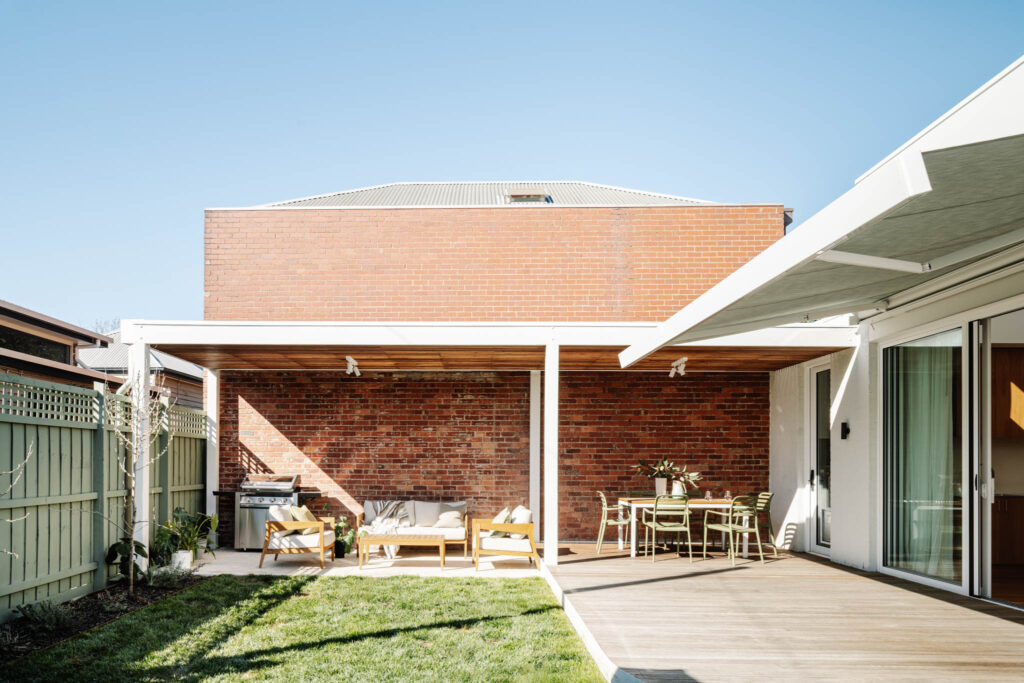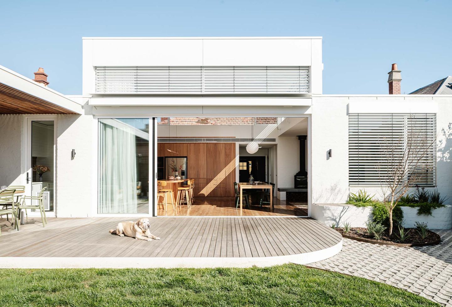 The traditional façade of red brick and quintessential white detailing engages with the hip suburb of Fitzroy North with inconspicuous, lived-in familiarity. The heritage frontage quietly adorns the streetscape, its single-level volumes efficiently maximising the plot of land in an amicable embrace of neighbouring properties. This undeniably charming, yet somewhat introverted façade reveals an architectural metamorphosis comprising restoration, renovation and a generous expansion that gently unfolds into a distinctly modern, light-filled heart of the home, while honouring the dwelling’s soulful legacy.