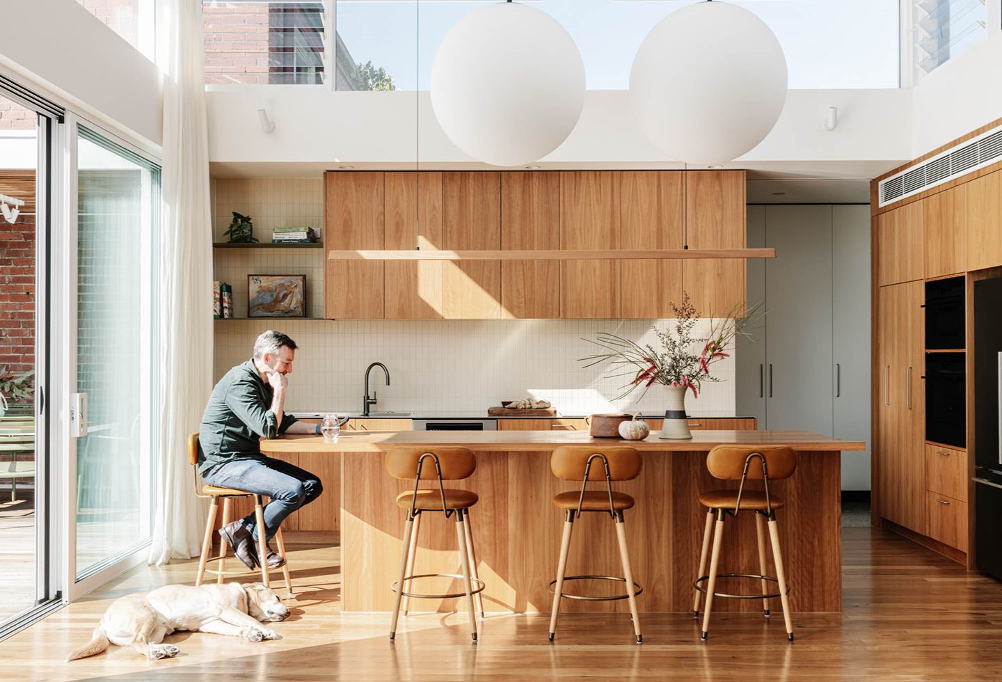 “The client’s brief was for a warm and inviting space for a family of five,” shares Ben Callery of Ben Callery Architects, the studio behind the Highlight House. “They love to cook and frequently entertain family and friends, so they wanted a space for guests to gather around while they prepare a meal to share.”