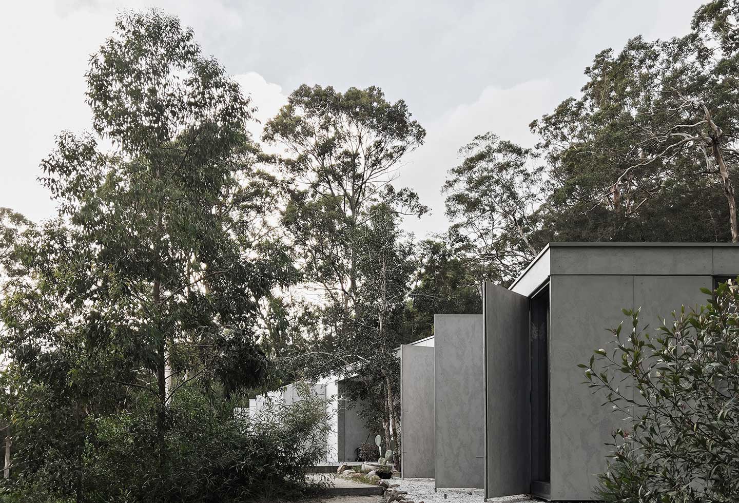 Like all good architecture, it’s about context – and it’s about not taking the similarities literally. With both architects in agreement, Gibney concludes: “These are buildings in an Australian suburban area or an Australian bushland site, and we do have unique climatic conditions that draw out a certain response. And yet at the same time, I think you could take the same logic or principles and apply them anywhere – because [the parts] that became the solution to deal with those parameters are about bringing back the humanity and the nature side of how we live and dwell anyway.”