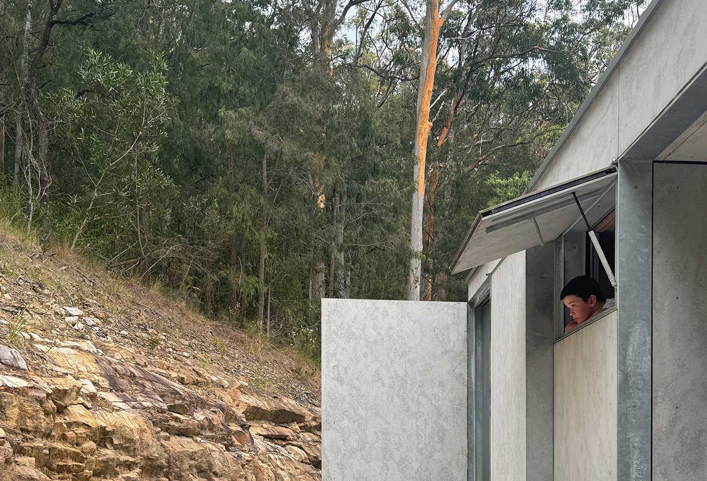 Describing his own engagement with the landscape by Seal Rocks, Gibney says: “As you go up the hill, you lose sight of the lake. But then as you go higher and higher, it appears again – and now, it appears beyond the canopy of the trees. So, you’re halfway up the hill and you have a mature tree canopy below your eyeline, with water above. Everything changed when we got up there… You were in this undeveloped area where nobody built houses, and so even the fauna – the birds and the lizards – just seem so at home. They weren’t bothered because they weren’t used to people being there when we were building.”