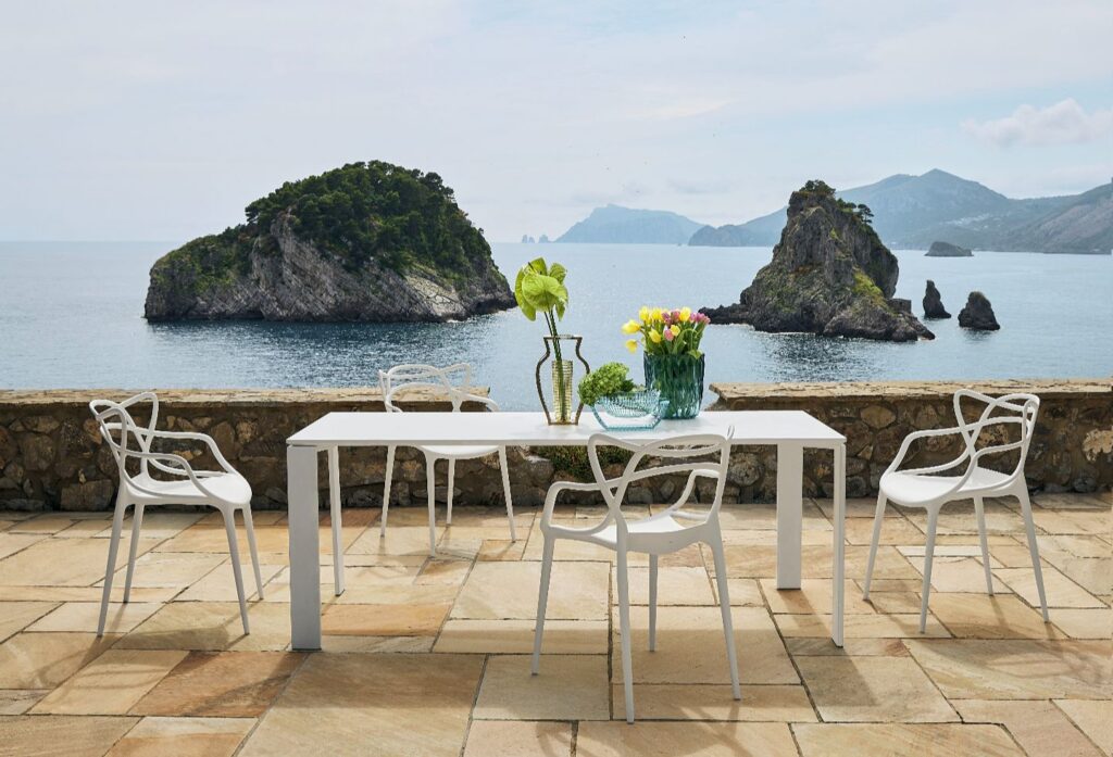 Kartell is as much about process as it is appearance, and today that focus has shifted towards sustainability, alongside a progression into outdoor furniture. Outdoor spaces play a central role in contemporary living, especially in Australia, acting as extensions of the home. Terraces, gardens and poolside settings are places of pause and connection, and Kartell approaches them with the same design rigour and emotional pull.