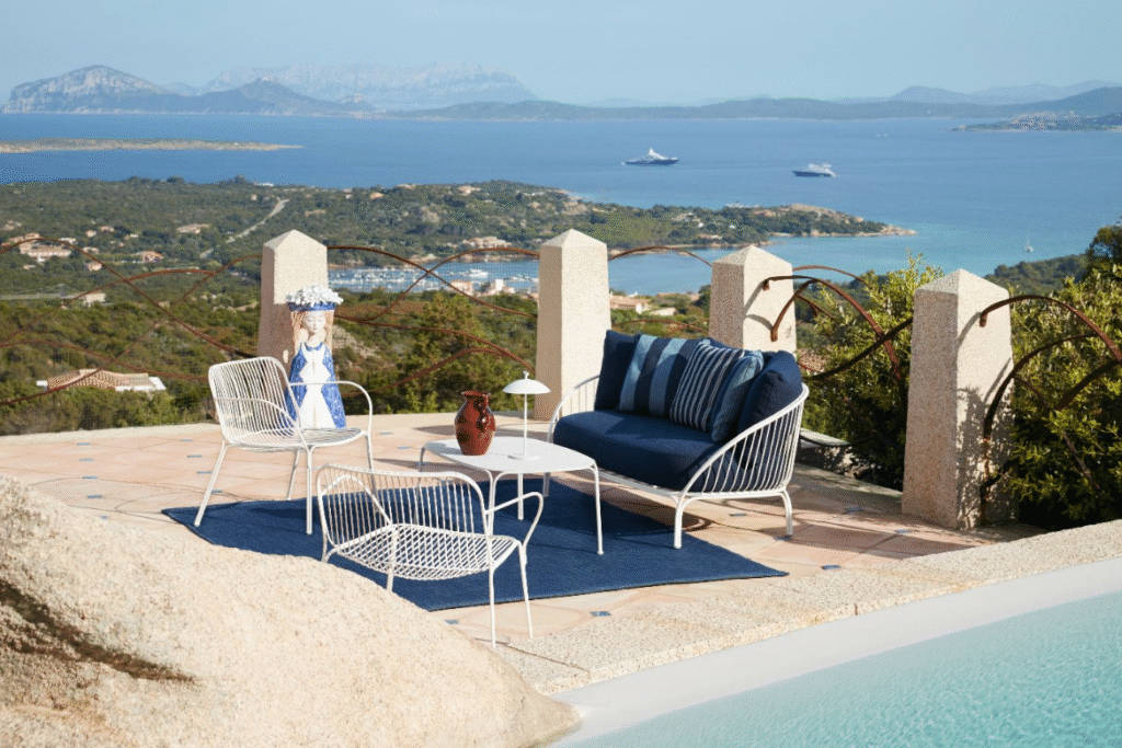 Take the HiRay Outdoor Collection, designed by Ludovica Serafini and Roberto Palomba, which captures the essence of life outside and the durability required for longevity. Built using a welded-wire construction, the collection references traditional European garden furniture while presenting a distinctly contemporary profile. Curved geometries soften the structure, while the seat cushions are made from polyurethane thermoformed foam covered with innovative fabric made from recycled PET bottles. Its furniture designed for lingering with a visually restrained design and a generous, comfortable spot to sit.