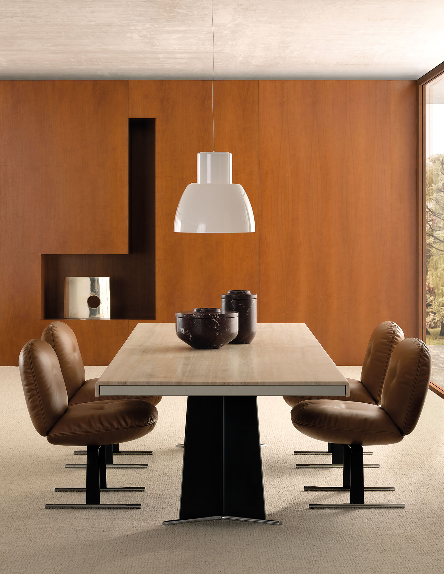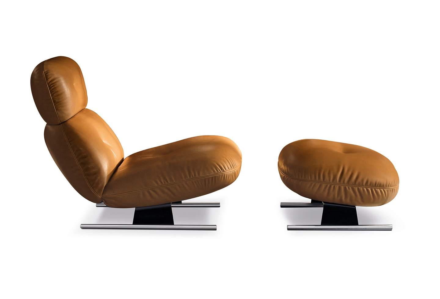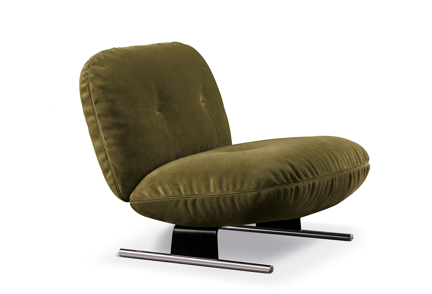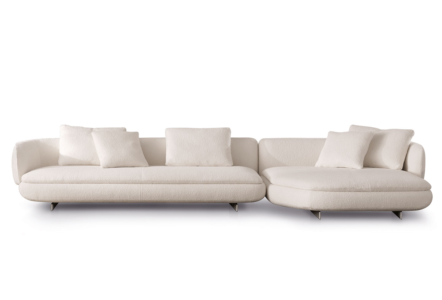 Hannes Peer‘s contributions blend past with present, balancing tradition with modernity in ways that align with Minotti’s desire to unite aesthetics and functionality. His Riley seating system (pictured above) exists as a juxtaposition between restraint and expression, with one side distinctly architectural and outward facing. The opposite side is softer on the interior, featuring a strong graphic element that invites relaxation.