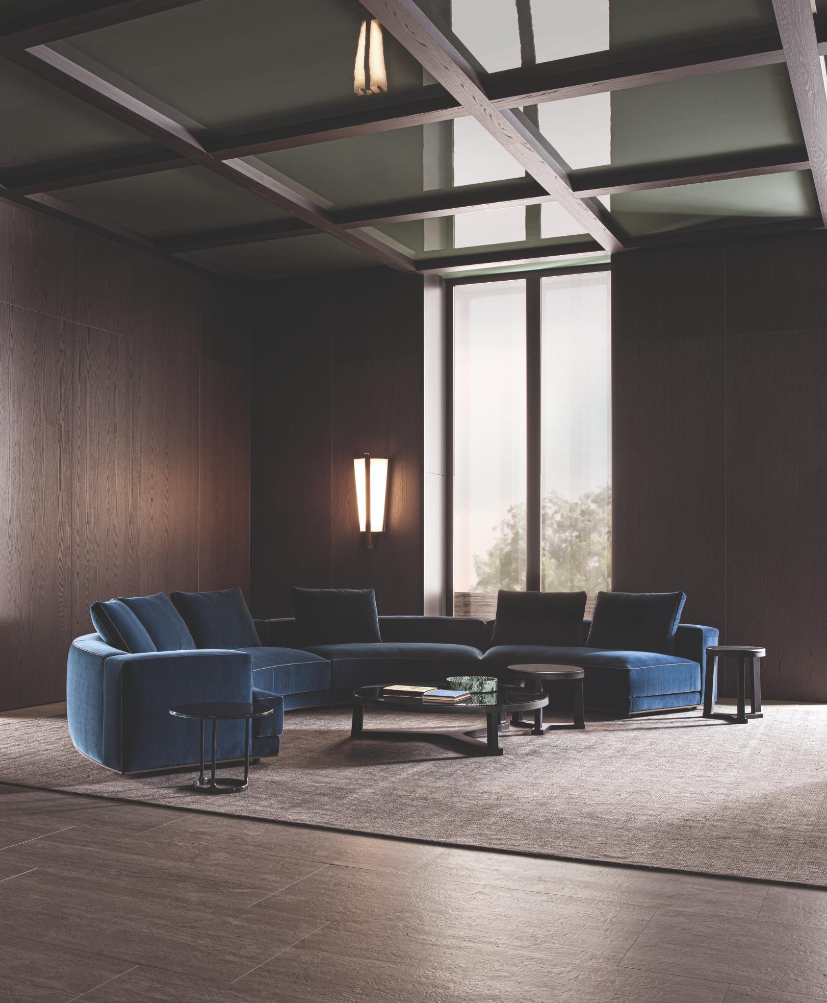 That sensibility can be found in the Augusto sofa, launched in 2023 and revisited in 2024 as part of a collection inspired by Milanese architect Piero Portaluppi and Villa Necchi Campiglio. The modular system features curved elements that can be arranged in circular compositions to encourage conversation. The timeless design is complemented by a contemporary approach to materiality, including recycled PET polyester fibre and innovative upholstery fabrics, including a vegetable-tanned leather derived from olive residue.