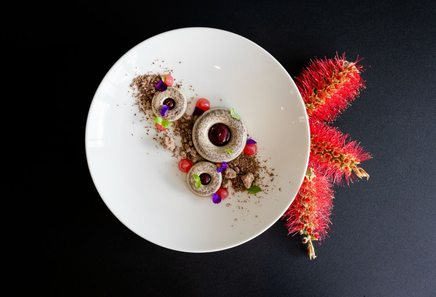 Lees’ connection to local producers is evident throughout. The Rainbow Trout, cucumber and yuzu crunchy cone is bright and precise; the 48-hour lamb shoulder dumpling is deeply comforting. Wine pairings shine, particularly the 2022 Millwood Chardonnay with the barramundi, shiitake and cauliflower course. A perfectly cooked Black Angus beef main arrives with potato purée and pickled mustard seeds, showcasing Lees’ restraint and technique. Many ingredients are foraged from the surrounding vineyards and gardens and transformed into bespoke vinegars, ferments and preserves. Dessert, served with a luscious sticky white, reflects the kitchen’s intuitive understanding of flavour balance.