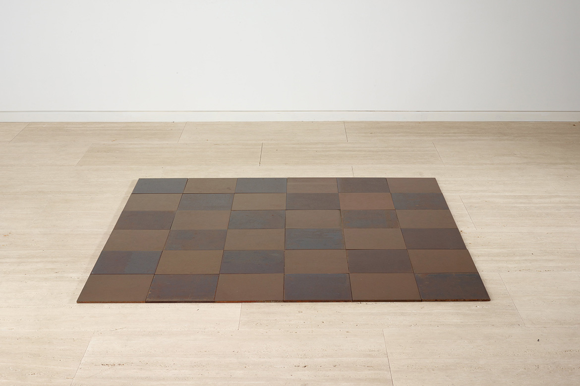 The suspended architecture also enables surprising spatial relationships and genuine discoveries. Placed on the floor, Carl Andre’s Steel-copper plain, 1969 serves as foundation for Ugo Rondinone’s if there were anywhere but desert. wednesday, 2000, creating an unlikely but compelling dialogue between the austerity of Minimalism and the candy-coloured melancholy of the contemporary human condition. Two semi-enclosed, darkened chambers, integrate seamlessly providing spaces for the inclusion of seminal video works by Francis Alys and Saskia Olde Wolbers. Other highlights include works by Nam June Paik, Thomas Struth, Donald Judd, Christo and Demand himself.