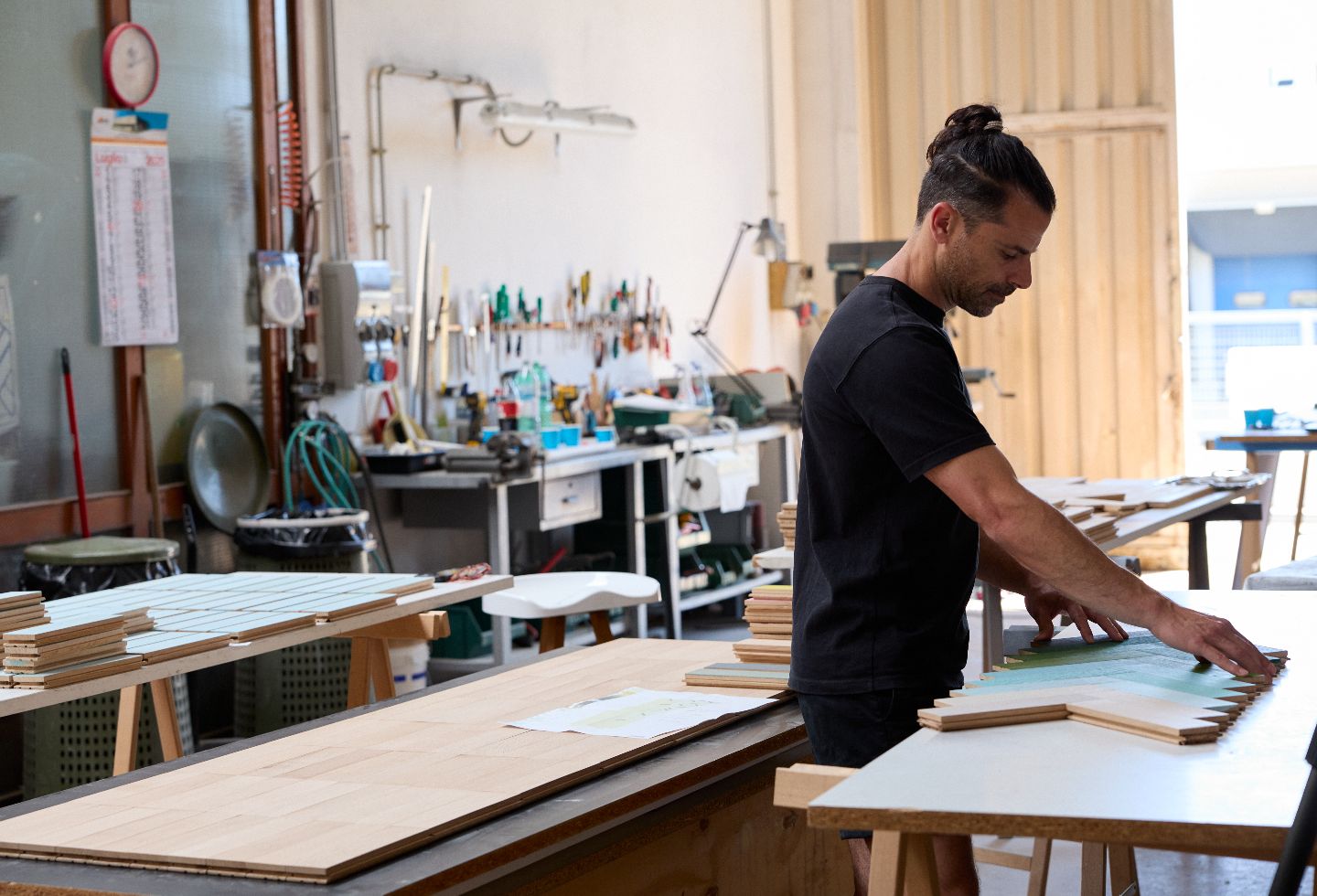 The first outcome of that approach will be a new collection launching at Salone del Mobile this April: a tile-like timber flooring system designed by Raw Edges. It’s a subtle shift in format, but one that allows for more varied compositions — closer to how tiles are arranged than traditional boards.