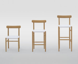 A very light, very strong solutions-focused stool. Designer of the Lightwood range, Jasper Morrison, harnesses the expert craftsmanship of Maruni wood technology to achieve a very light wooden structure. “Its a contract chair which is equally suitable for the home and it can be completed with a variety of different solutions for the seat: starting with the lightest, a white mesh, which leaves the structure partially visible, then a woven webbing which reminds us of shaker furniture; its a synthetic webbing which makes an interesting contrast with the wood, he says. For a more traditional Lightwood chair, you can upholstered the seat which provides extra comfort and can be removed for cleaning”, says Morrison. The Lightwood range is available in solid timber, birch or oak with white mesh, webbing or removable fabric or leather upholstery, with or without arms.