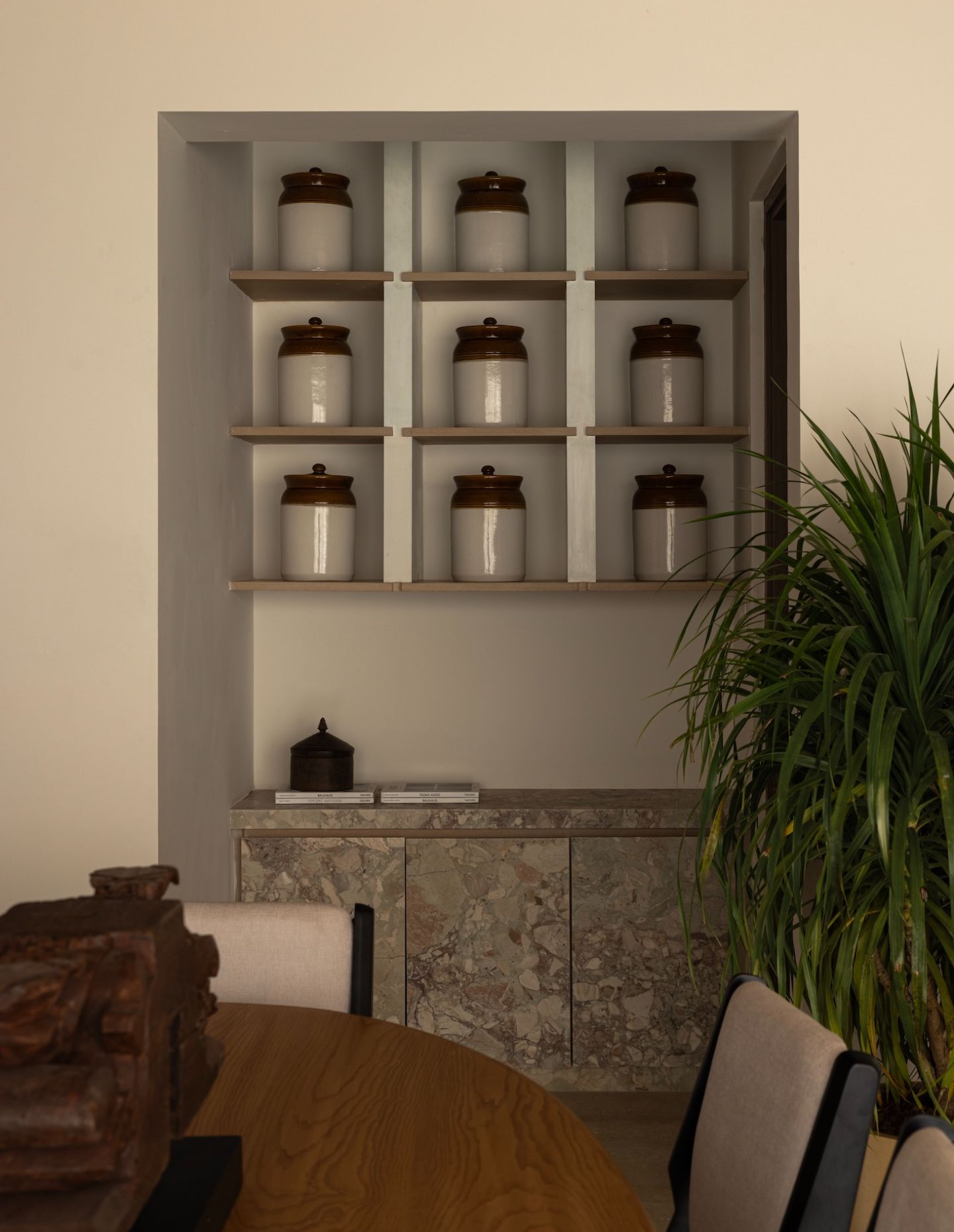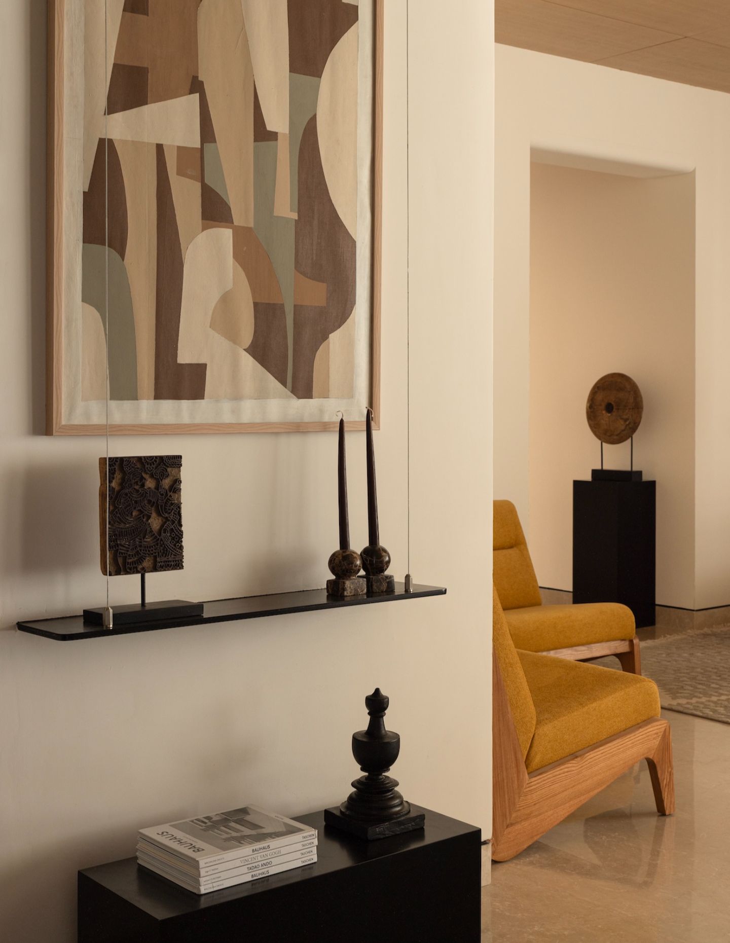 The brief called for warmth without excess, minimalism without sterility. The ambition was to create a space that feels cultured and grounded — layered with meaning through craft, vintage objects and bespoke detailing. Longevity — emotional, aesthetic and material — guided every decision.