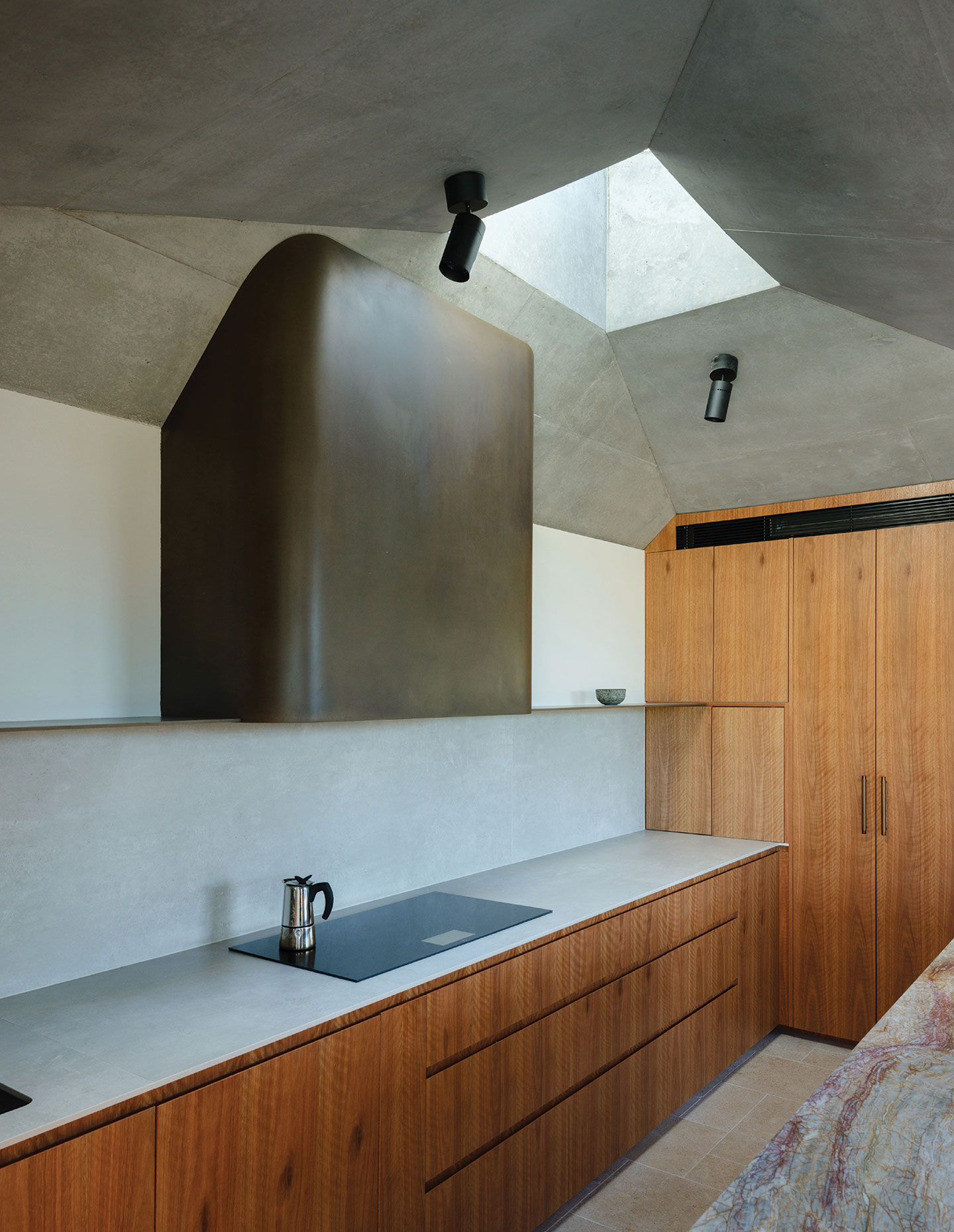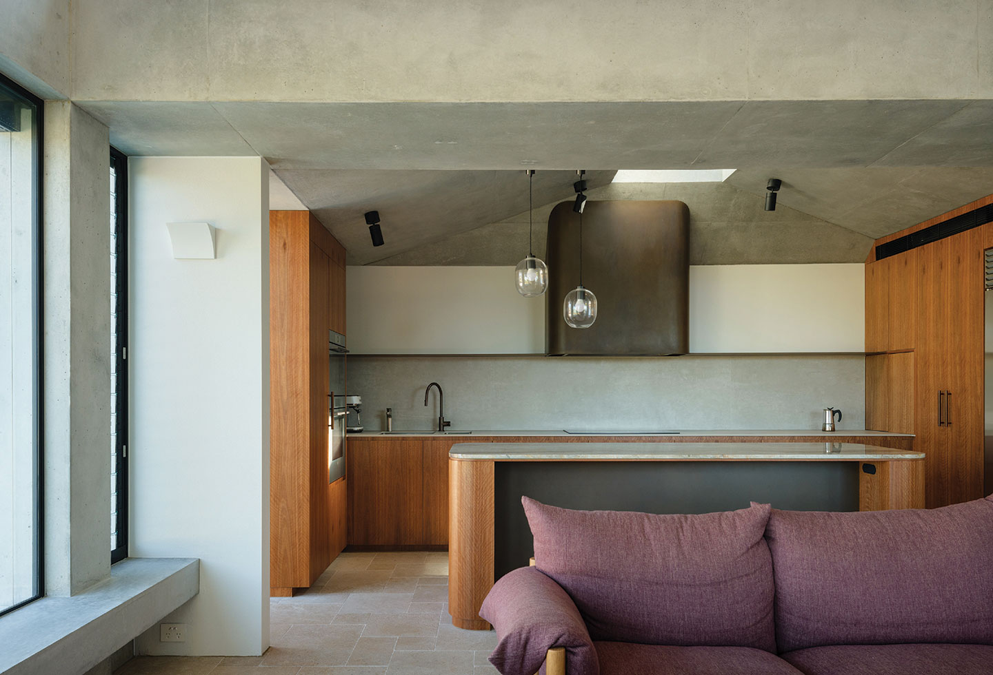 “This natural urge to follow the sun has allowed the clients to be constantly surprised by the rooms they spend time in at various points of the day, unconsciously based around this primal urge,” says Mitchell. “Deep north overhangs allow the summer’s natural ambient light to flood the space, whilst allowing direct solar access into the space for the winter sun.”