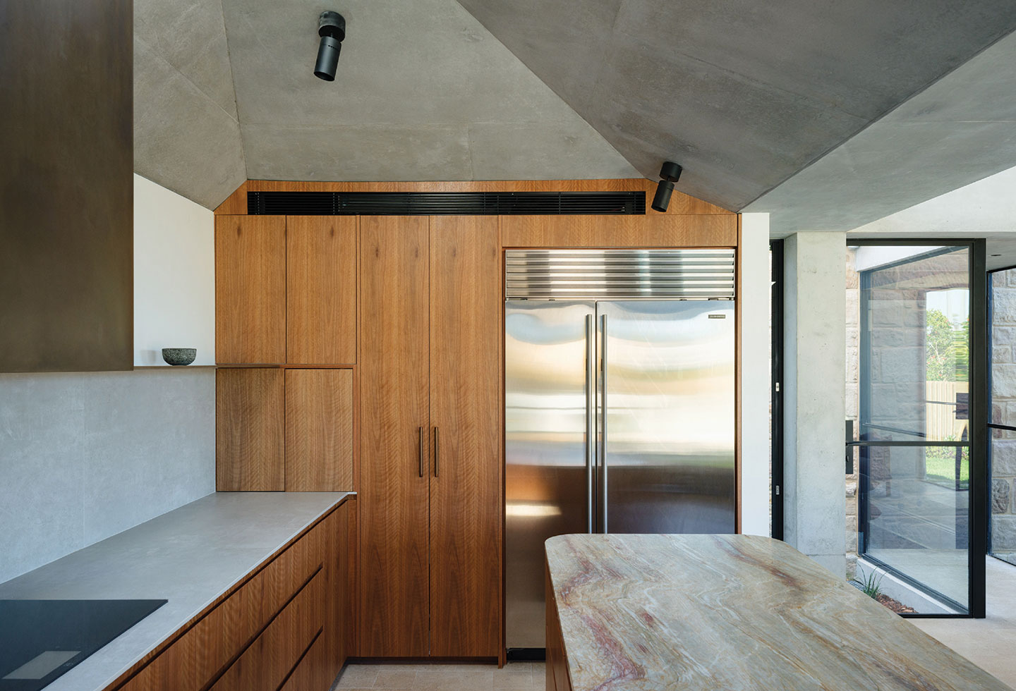 As a modern addition to a heritage home, the architects prioritised retaining existing walls and materials, minimising waste and preserving the building’s embodied energy. Equally, they utilised locally sourced materials to minimise the environmental impact and incorporated passive solar design, insulation and energy-efficient glazing, which collectively contribute to the sustainability of this pavilion.