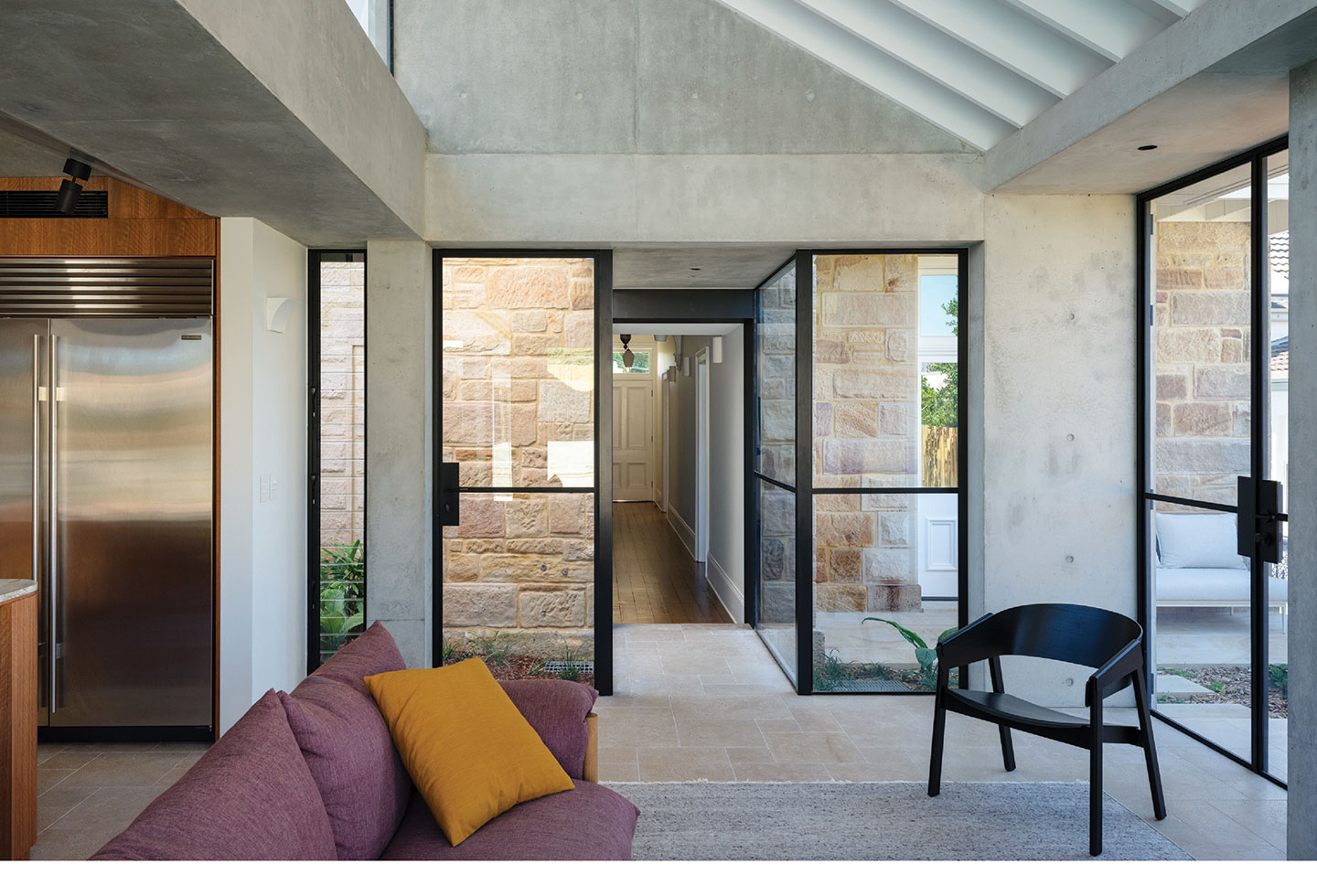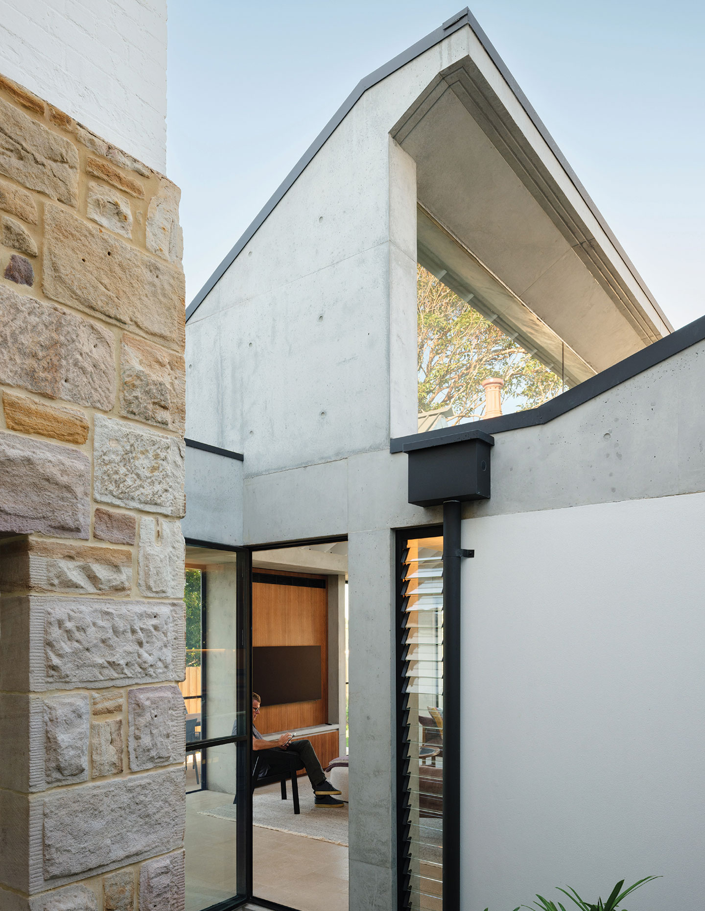 Reading through the history of Cairngorm, the architects found a lasting legacy. “The area where the house was built is the earliest parcel of land to be subdivided and developed in Balmain, Sydney,” says director David Mitchell. Local stonemason brothers “built the impressive pair of two-storey attached houses in 1881 (numbers 11 and 13 Jane Street, Cairngorm and Rosebank).”