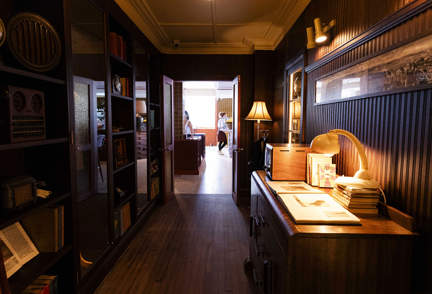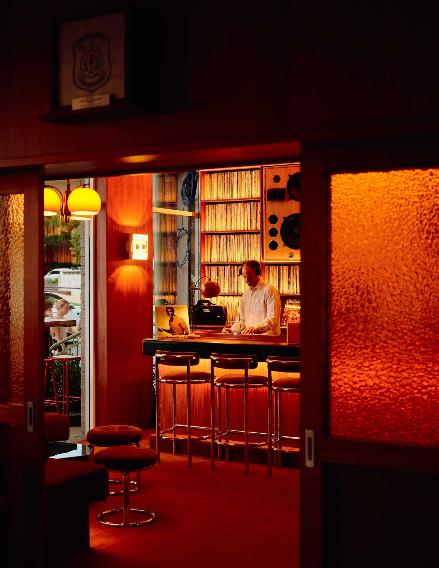 Inside, the hospitality offering broadens the experience. The food is led by Mike Eggert, whose approach balances familiarity with a level of refinement that elevates the everyday. Nearby, Mr Pop shifts the tone into something more stylised, drawing on a 1950s jet-age aesthetic that references Rose Bay’s history as Australia’s first international airport. The record bar format introduces a slower, more tactile rhythm — a contrast to the movement elsewhere in the building.