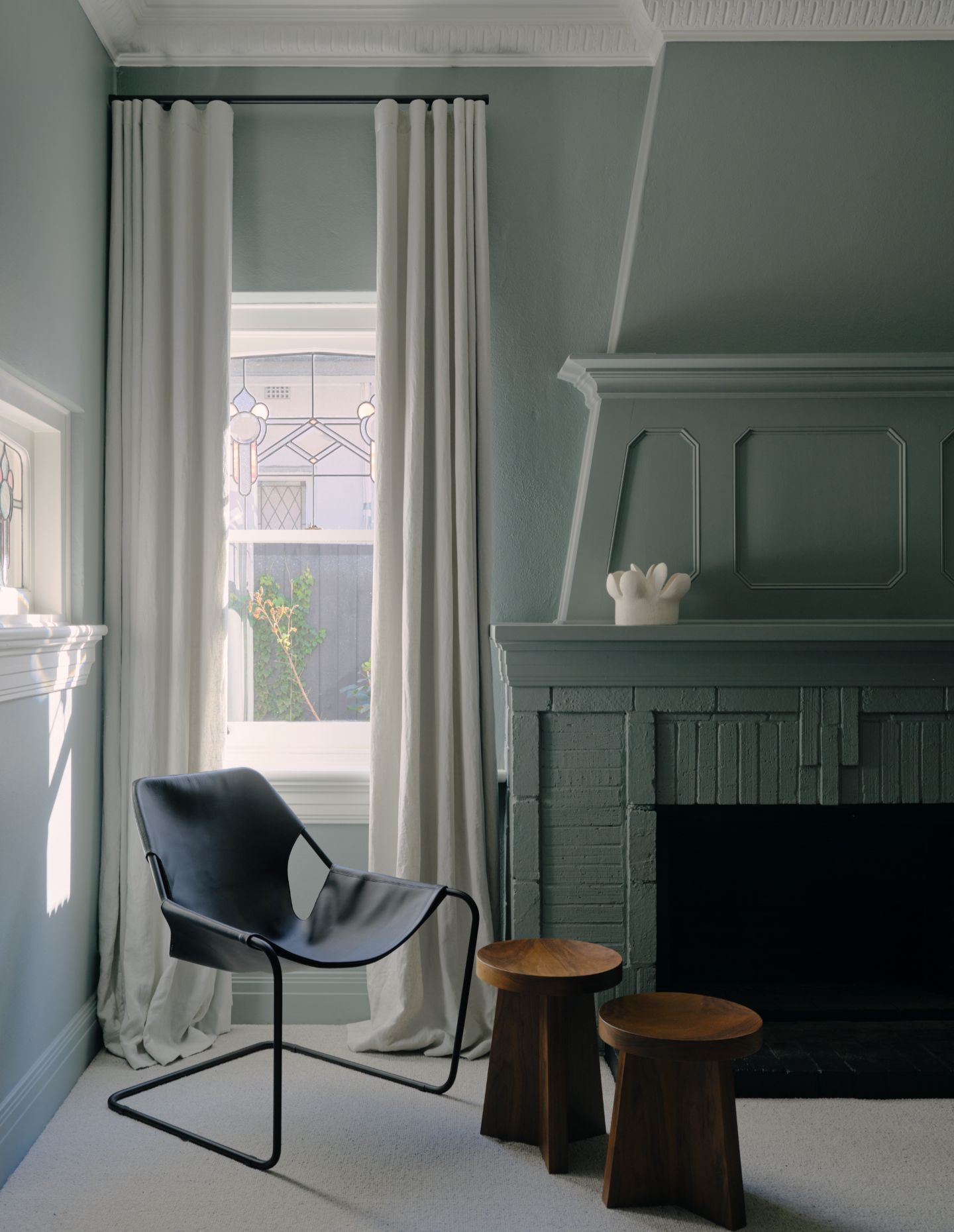 With decades of ad-hoc renovations peeled away, the house was able to be returned to a coherent baseline. Within that revived shell, certain spaces gently shift register – most notably the study, where a singular deep green palette wraps the fireplace, joinery and walls. They combine with a modern and more chromatic gesture, threading elements from the original home into the design language of the extension.