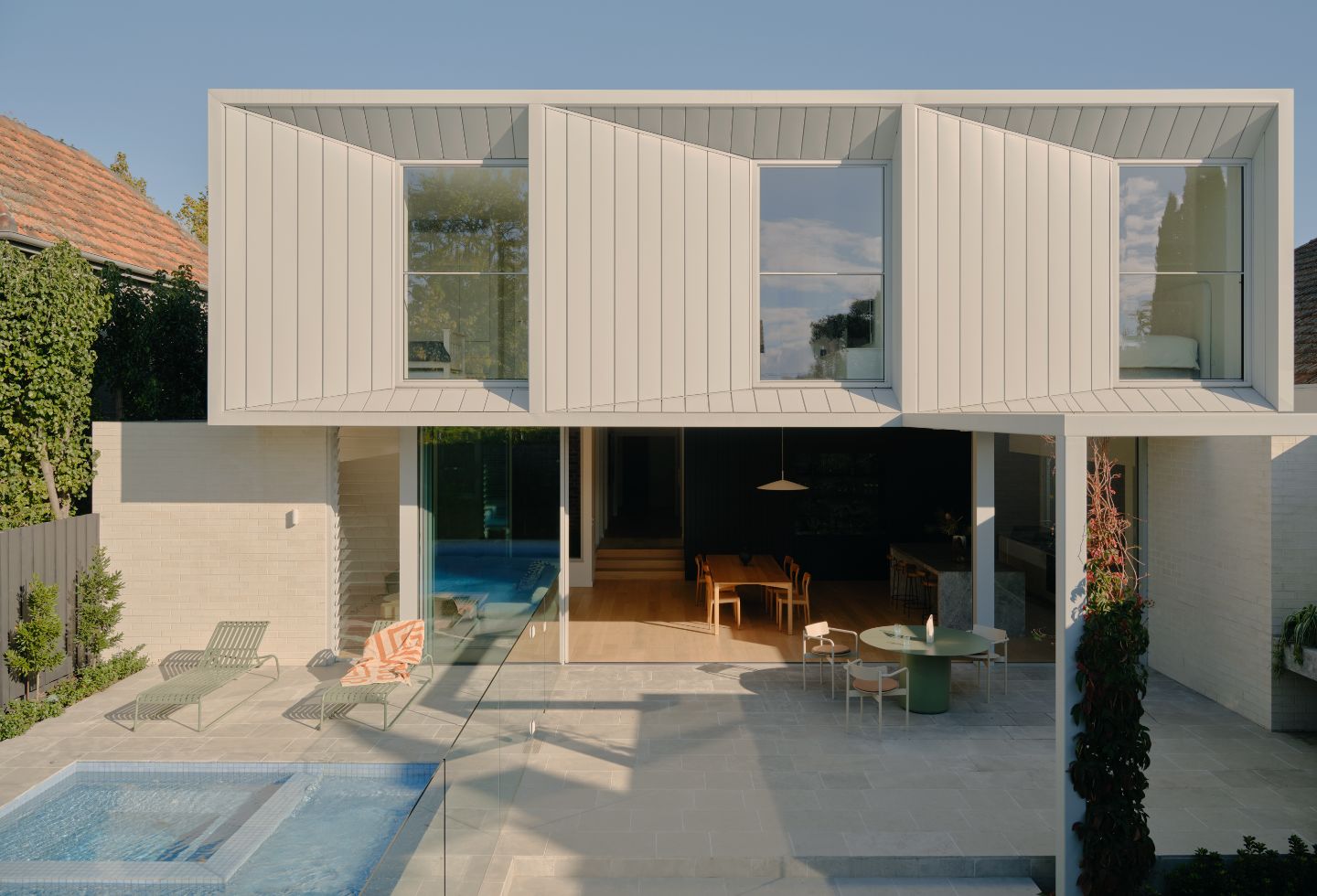 “The majority of the heritage elements at the front [of the home] were preserved to maintain the original character,” director Tom Robertson describes. “While some of the detailing was simplified, it was the result of a considered balancing of moments that would allow for a softening of the typical contrasts that tend to exist between old and new.”