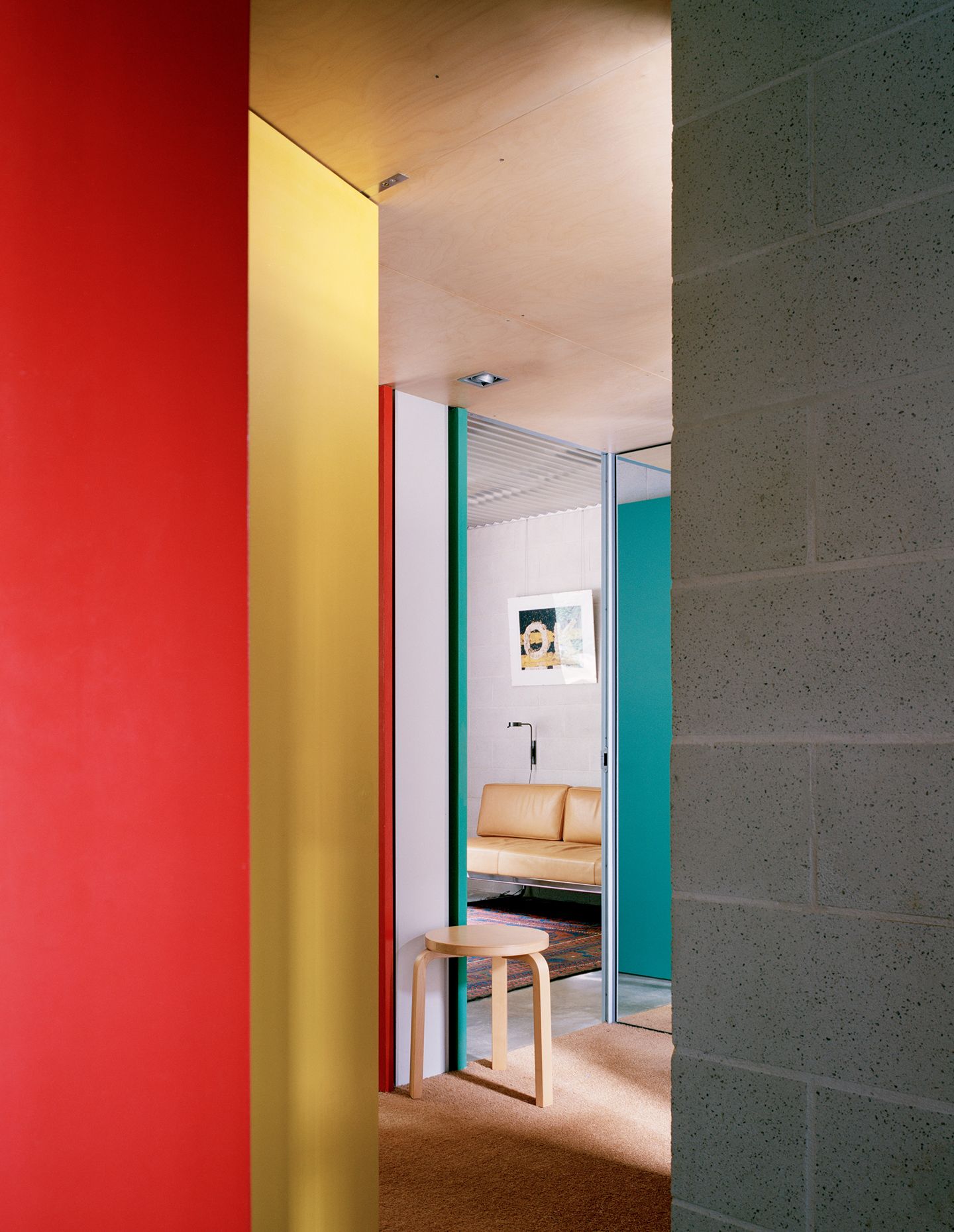 Interestingly, Langston-Jones explains how these and other material choices were part of a rigorous design process that led to the presence of such excitingly bold bursts of colour. It wouldn’t be a stretch to call the project modernist in inspiration, with the architect explaining that structural honesty was a key driving concept. Far from using colour frivolously, the strong choices are a response to the honest, robust materials in a Vitruvian effort to balance legibility, integrity and joy.