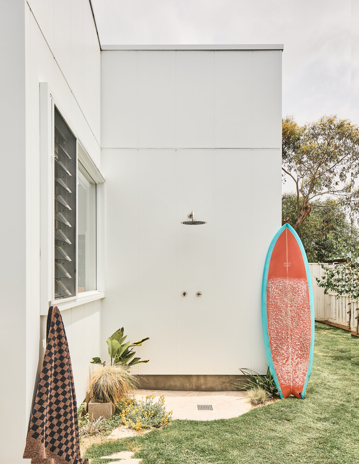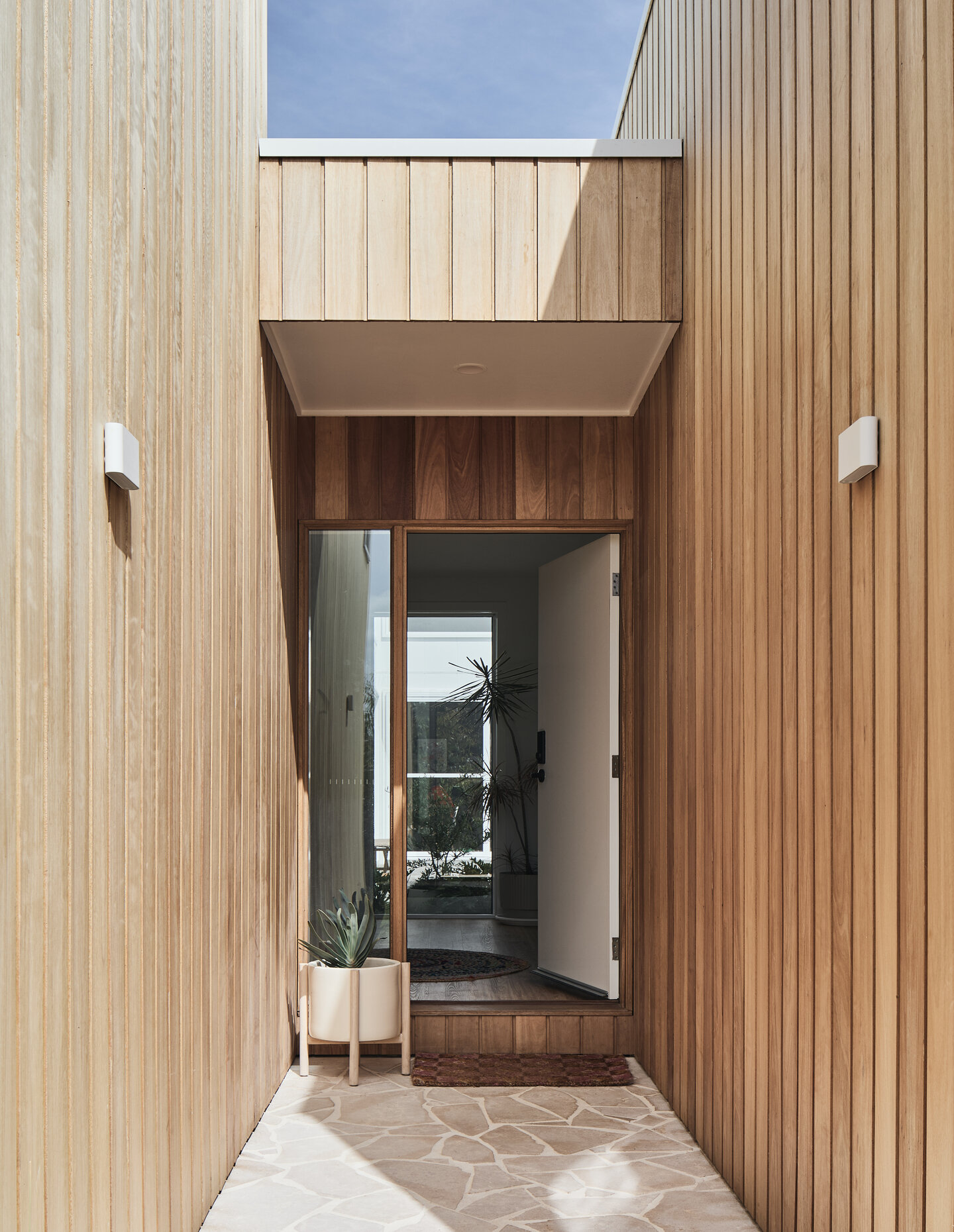 The coastal setting also informed key decisions, including the use of durable materials and a planning approach that supports cross ventilation and filtered light. Together, these moves create a house that is responsive to its immediate conditions and attuned to its climate and setting.