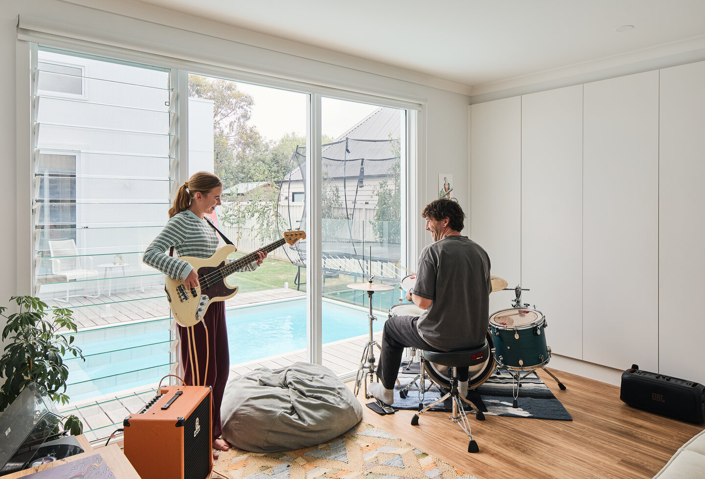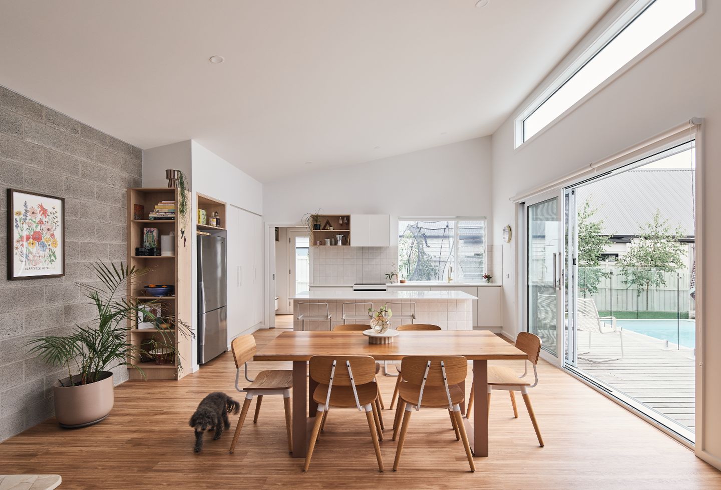 The design responds to family life, flexibility and a strong connection to outdoor space. Rather than relying on a single open-plan arrangement, the house is organised as a series of connected rooms that allow for both togetherness and retreat, supporting different activities and rhythms throughout the day.