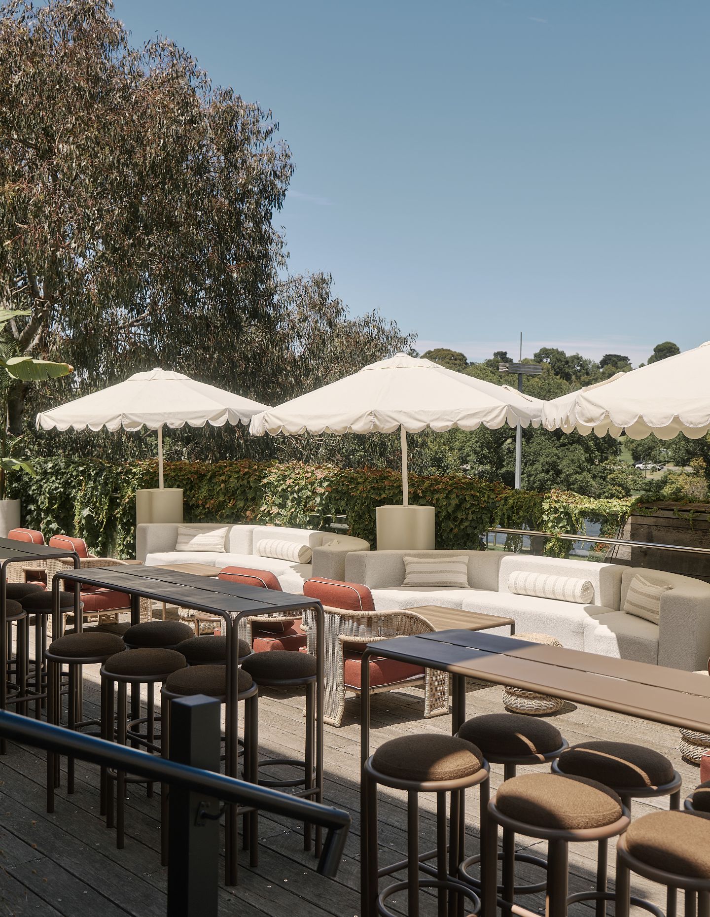 The program spans 18 locations across Melbourne Park, from 525-seat restaurants to exclusive suite experiences. Each venue operates on a three-year circular design cycle, with assets reimagined annually and unused elements diverted from landfill. It’s an approach that could easily compromise creativity. Instead, it’s become a design constraint that sharpens focus.