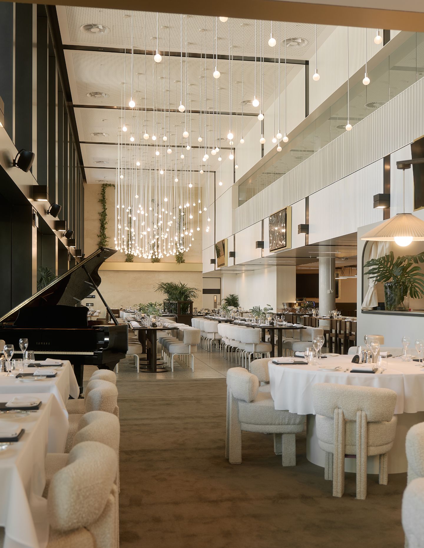 AO Reserve faces a design tension common to large-scale programs: how to maintain cohesion across venues while giving each its own personality. When working with Brisbane restaurant SK Steak and Oyster, Spencer flew north to experience the original space firsthand, absorbing its atmosphere before translating select elements — a baby grand piano, attention to ceiling height, specific material choices — into a Melbourne context that honours both the restaurant’s identity and the Australian Open’s DNA.
