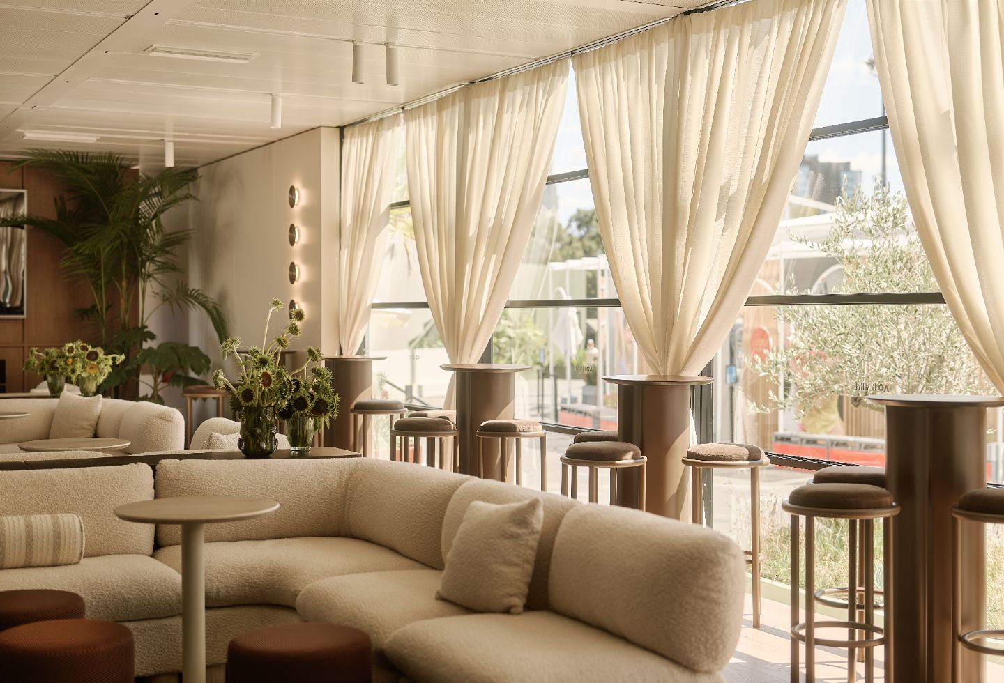 “We don’t want to cookie-cut what these spaces traditionally look like,” says Barrett. “We take accents and recreate them in a way that merges with the Australian Open personality — this happy slam, celebrating summer in Australia with a barefoot luxury approach.”