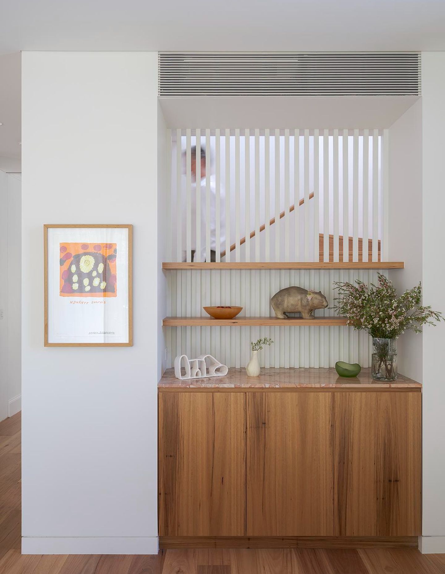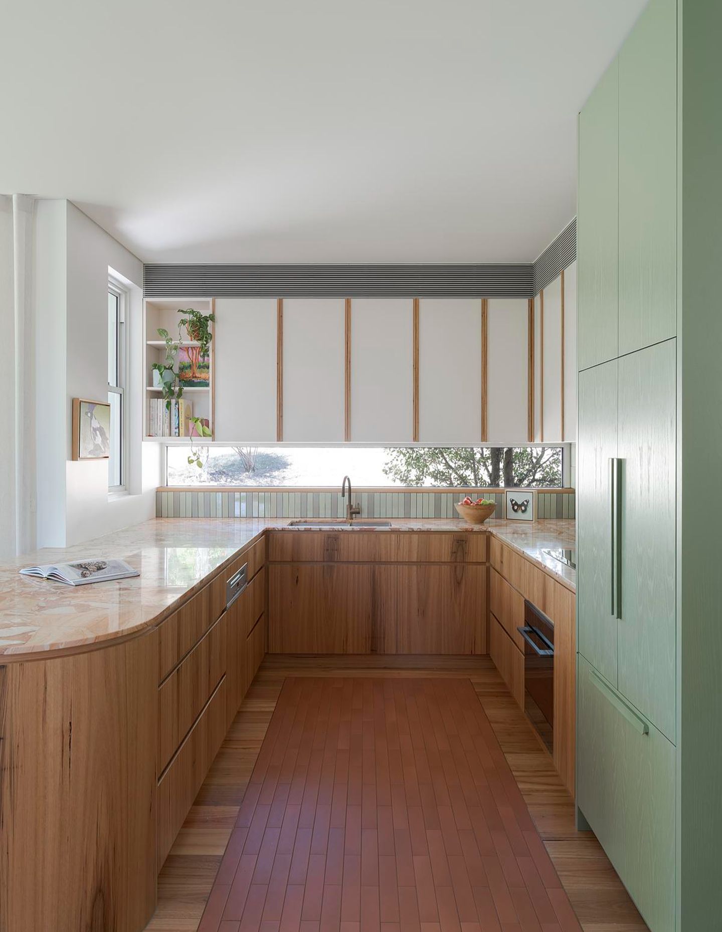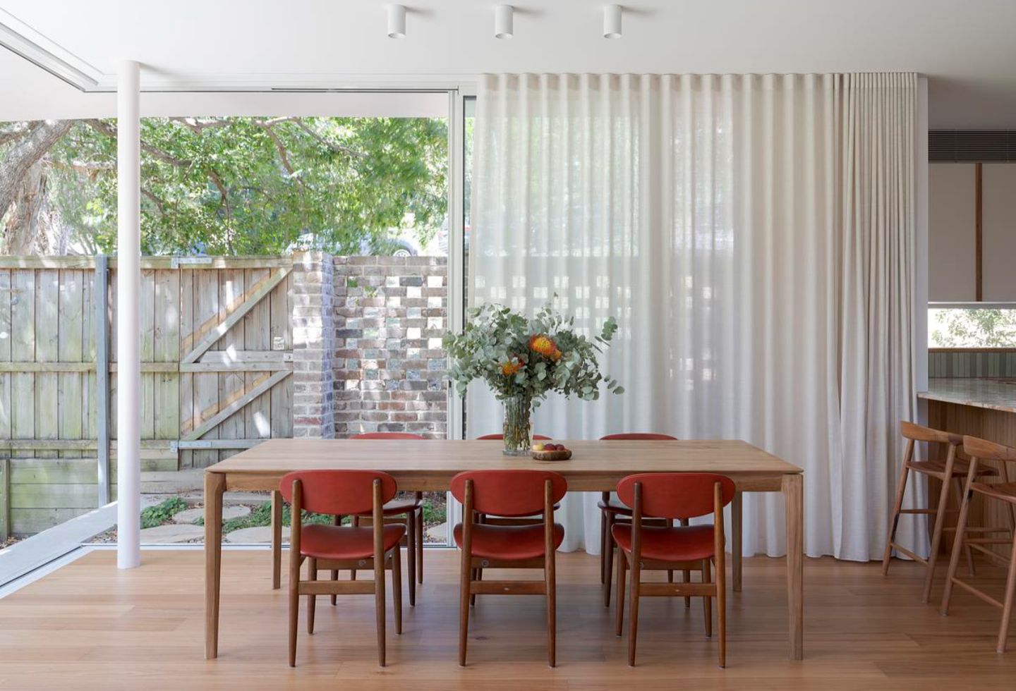It began with a photograph of the family in the Australian outback — bleached greens and iron-rich reds. That image quietly informed the renovation. It wasn’t about recreating the landscape, but about embedding warmth, texture and material honesty into the home. Beyond the need for more space, the clients wanted a house that felt grounded and capable of evolving with their children.