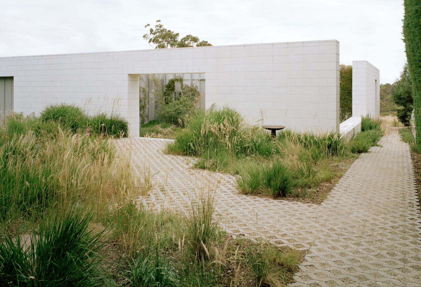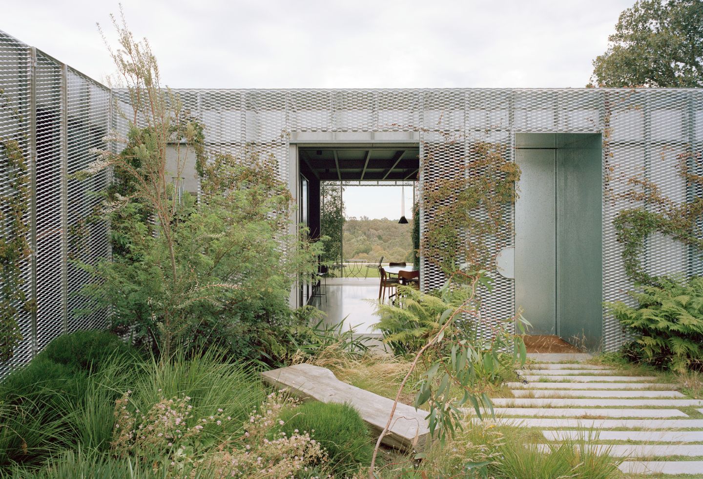 That attentiveness to climate extends beyond the boundary. Working with landscape architect Sarah Hicks, the team has paired a native, loose-feeling garden to the street with a restrained lawn terrace to the west.