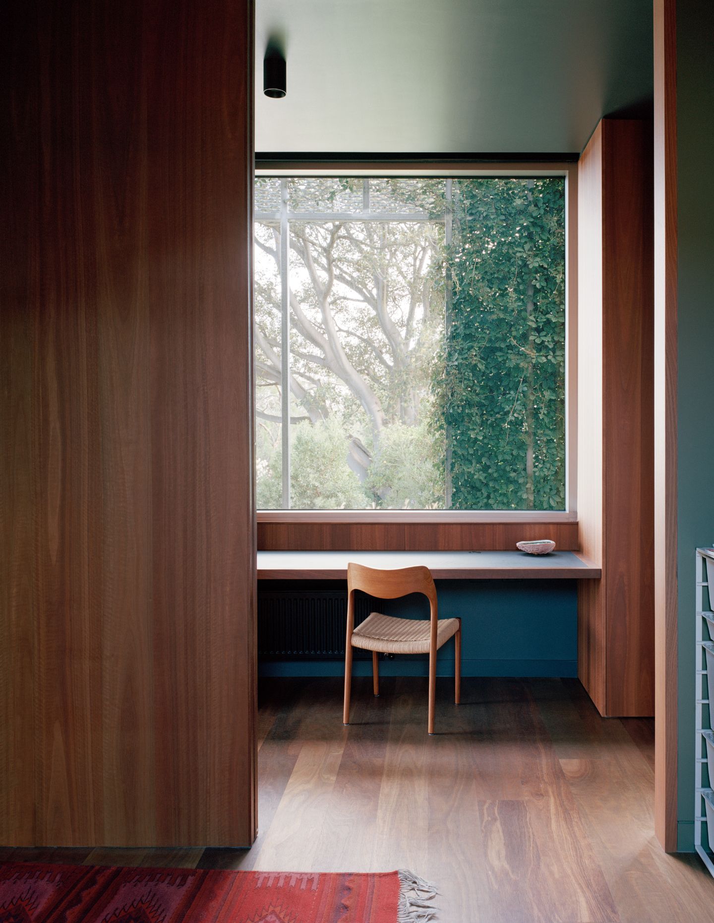 What could have been leftover circulation becomes a generous workspace that draws the family out of private rooms to be together in loose, everyday ways. It’s one of Bright’s favourite resolutions: “Small rooms, expanded by shared space… it allows for those moments of spill, which is where family life actually happens.”