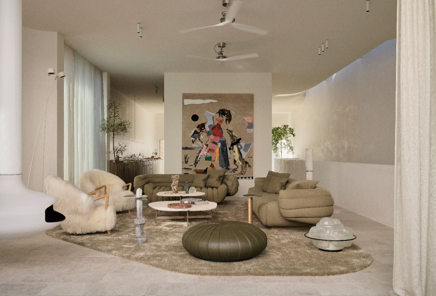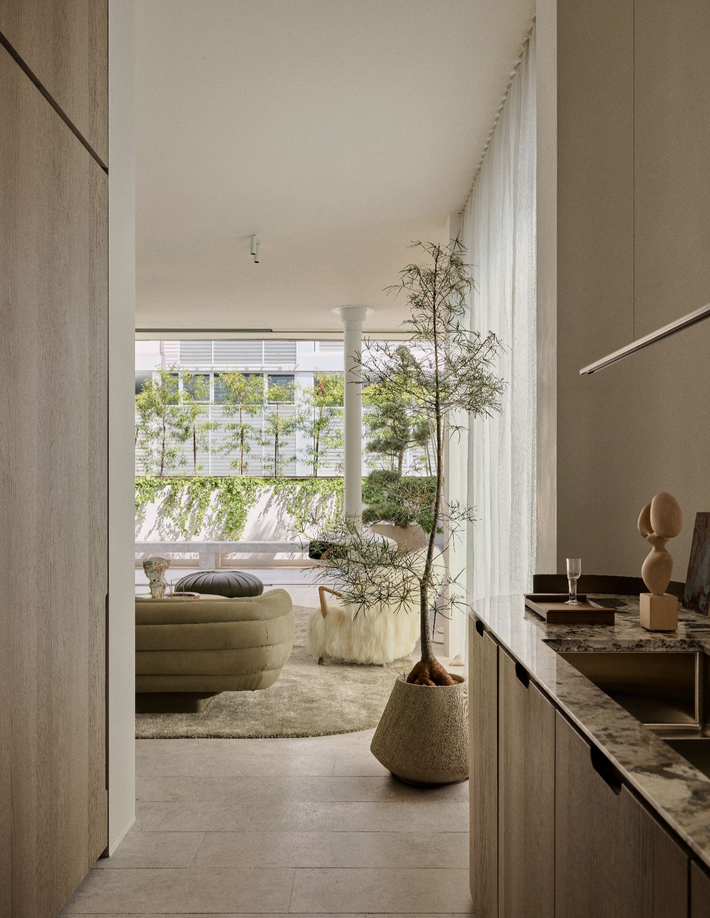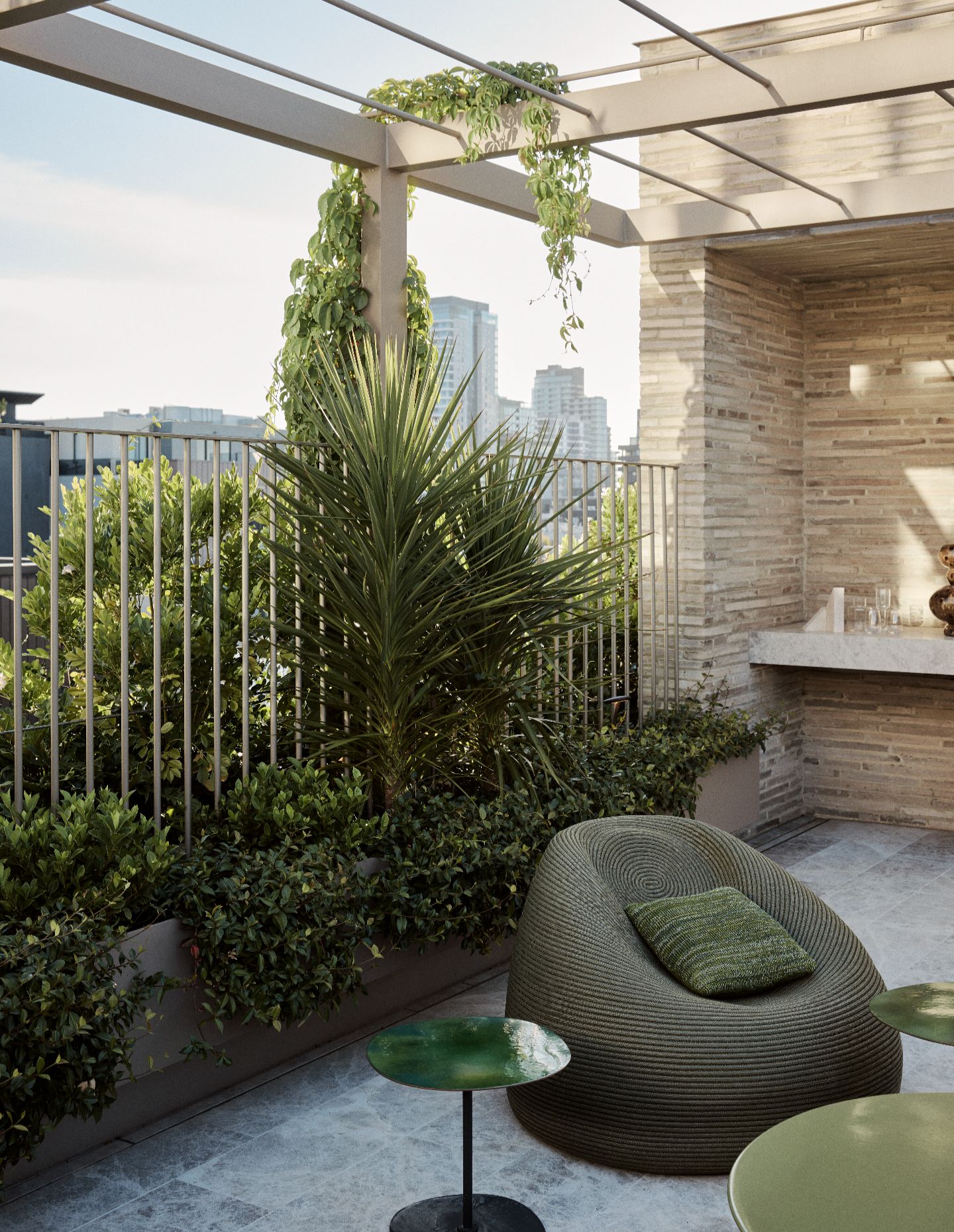What makes this project particularly compelling is the level of creative authorship across every scale—from the overarching architectural form through to the finest interior details. The furniture collection was designed and curated in its entirety, including collaborations with master colourist Paola Lenti on rooftop furnishings. The team also worked with a specialist art curator to guide the clients — new to contemporary art — through acquiring works by Australian artists including Sally Smart, Ben Quilty, Alex Seton and First Nations artist Mantua Nangala.
