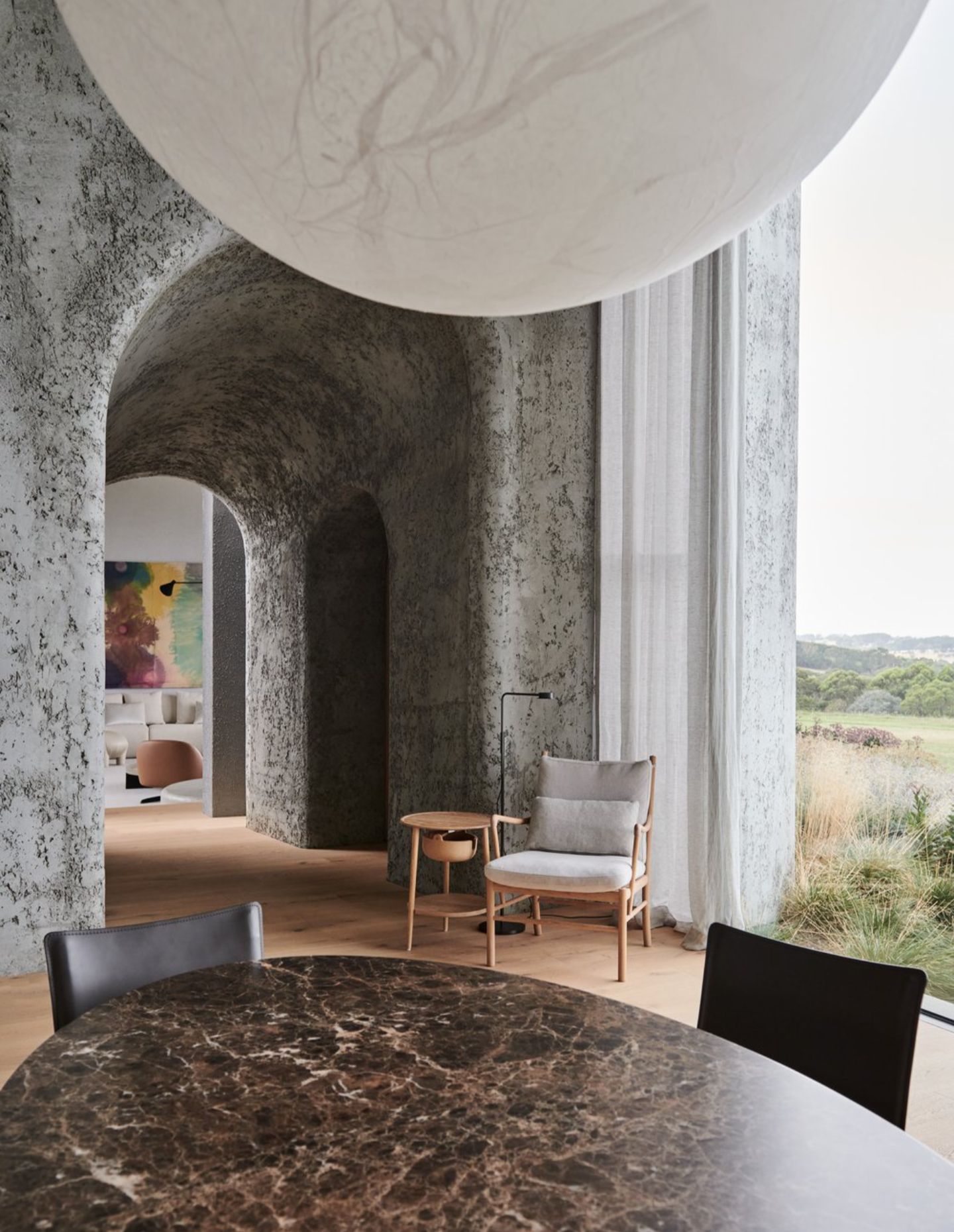 What sets this project apart is its ability to feel nurturing while withstanding the harsh, windswept environment of the peninsula. Robust, sustainable materials anchor the house for longevity and reduced carbon footprint, while gentle curves, natural timber and stone bring warmth and intimacy. This balance of strength and softness ensures that the architecture is both durable and deeply human.