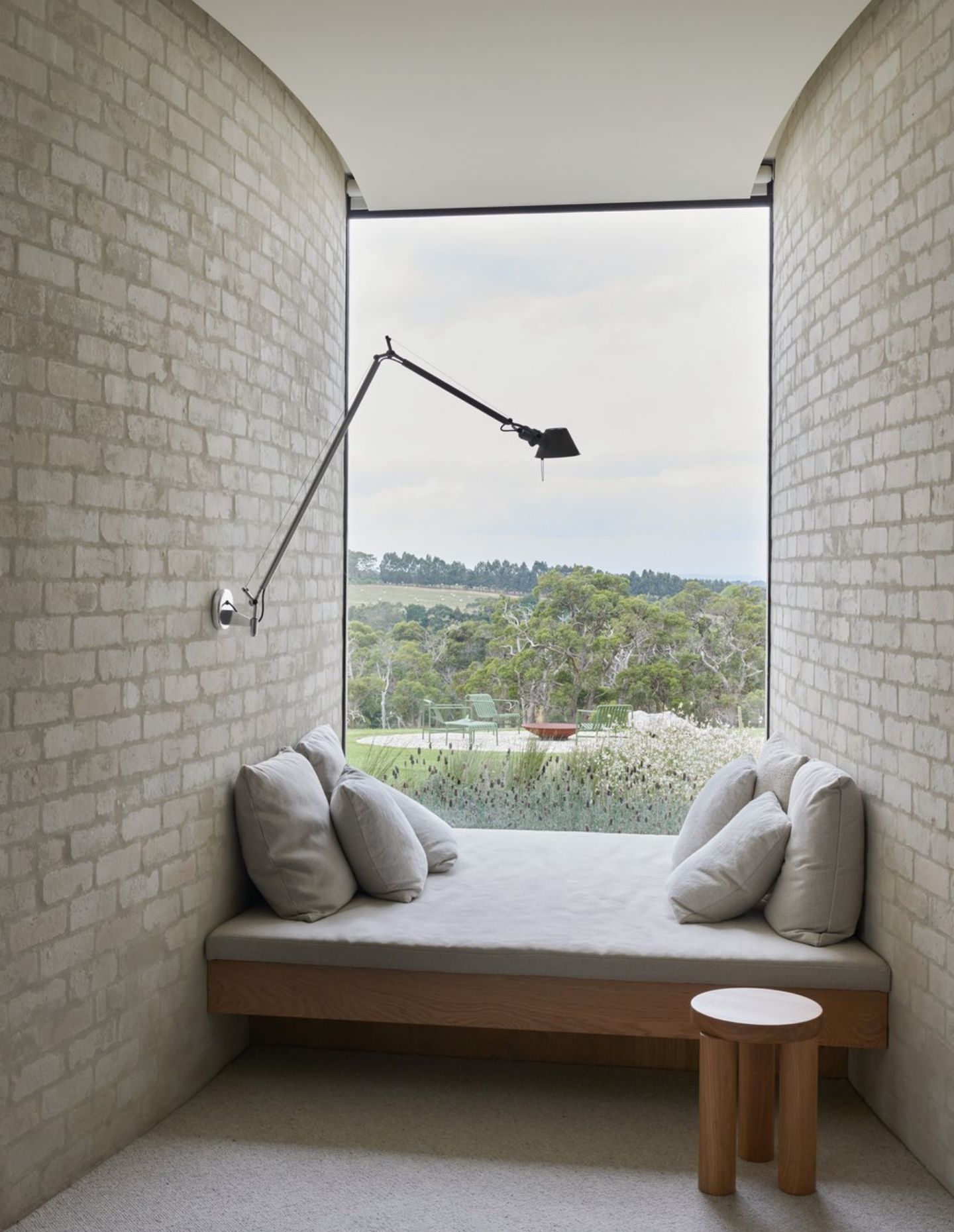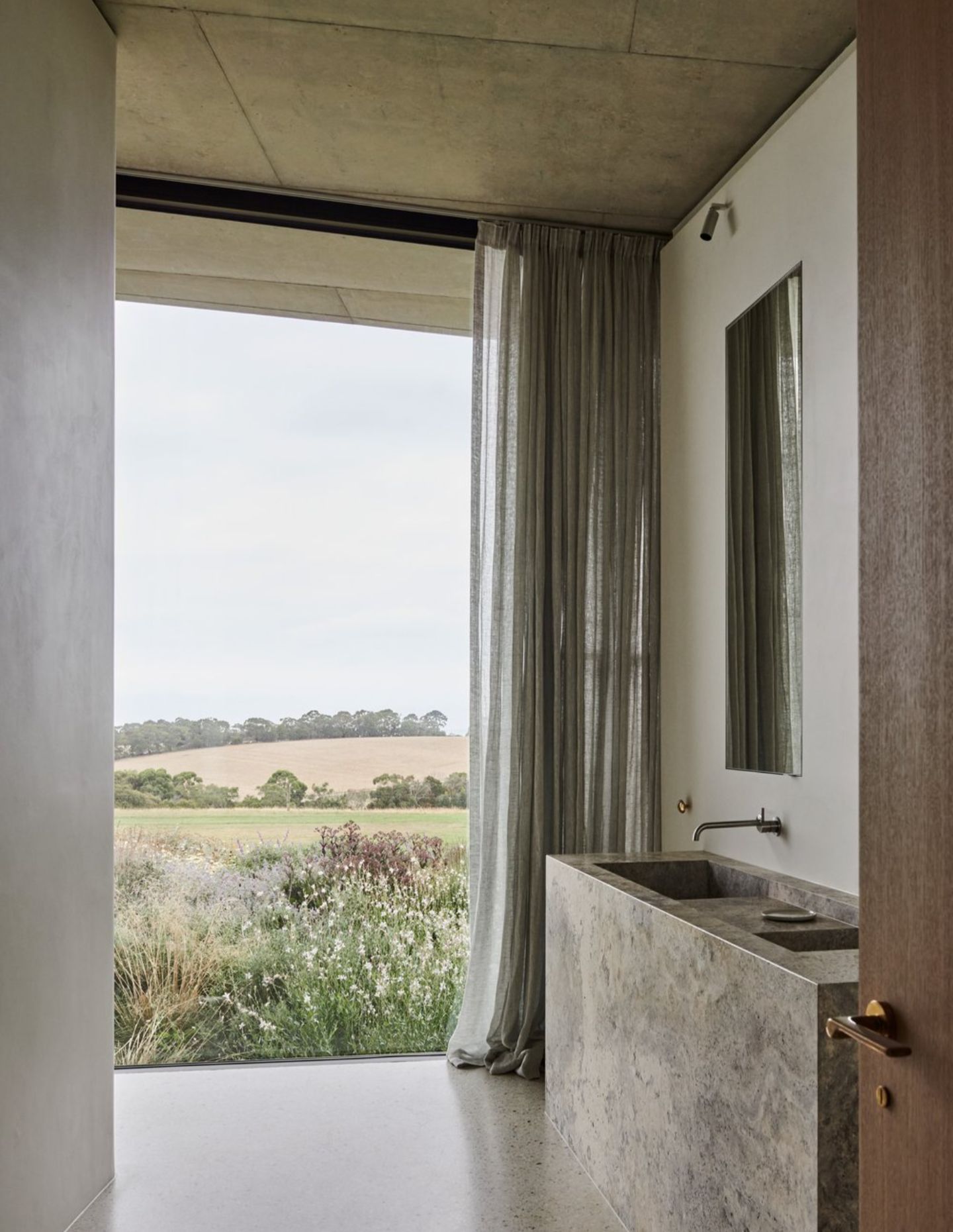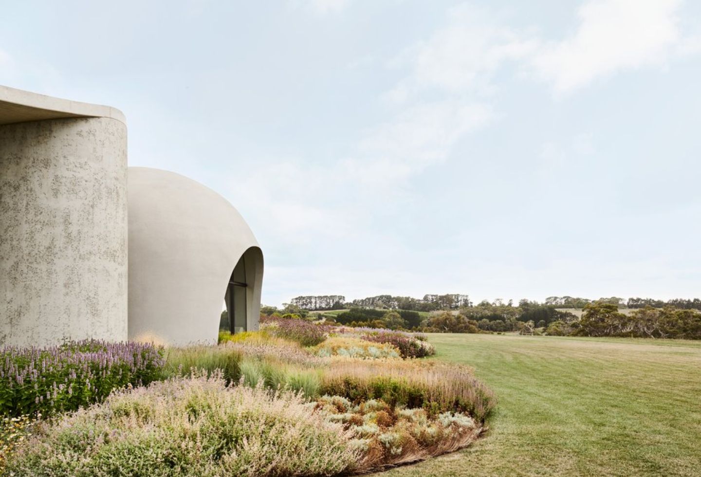 Nestled on Bunurong Country on Victoria’s Mornington Peninsula, House on a Hill is conceived as a multigenerational home that both nurtures its inhabitants and protects them from the region’s harsh, windswept environment. Designed with flexibility at its core, the home is made to adaptable – specifically, to cater for two residents, extended family, social and corporate gatherings, as well as the functional requirements of a working farmhouse supporting vineyard and livestock operations.