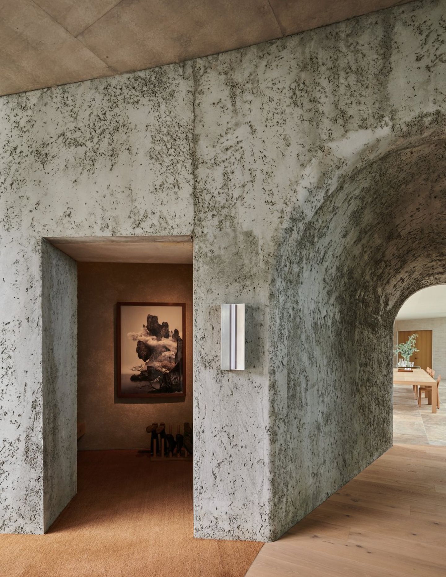 The interiors reveal a masterful balance between openness and intimacy. Expansive, light-filled spaces encourage connection, while subtle zoning ensures privacy and calm. Combined with the materials, the result is an interior environment that is as resilient as it is refined, creating a sensory experience where light and shadow, sound and silence, transparency and opacity co-exist in harmony.