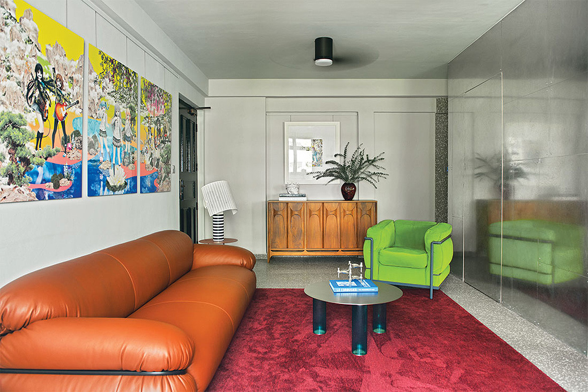 This flat integrates home, office and gallery within a single space to allow the owner to live, work and showcase his art to collectors.