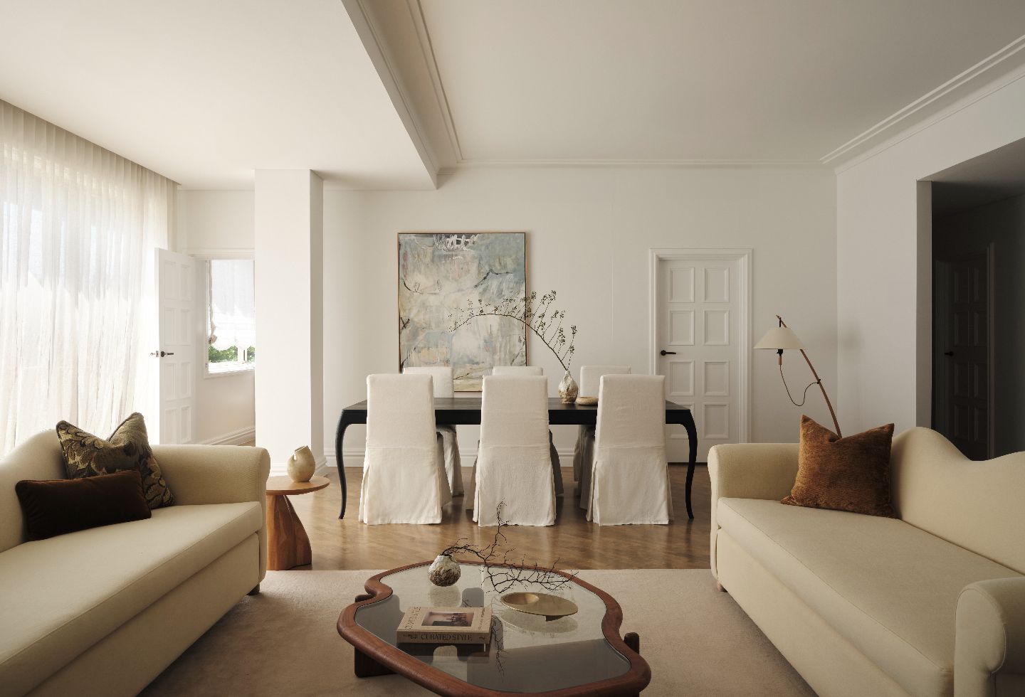 Tucked within Double Bay’s Doria building, this refreshed apartment engages directly with the architectural legacy of the late Ercole Palazzetti. Designed in the 1990s and left largely untouched since, the original interiors carried the hallmarks of Palazzetti’s European-inflected approach: generous proportions, quiet material confidence and a balance between comfort and formality. Rather than rewriting that language, Jacket Curated’s update works with it, refining the palette and enhancing day-to-day performance.