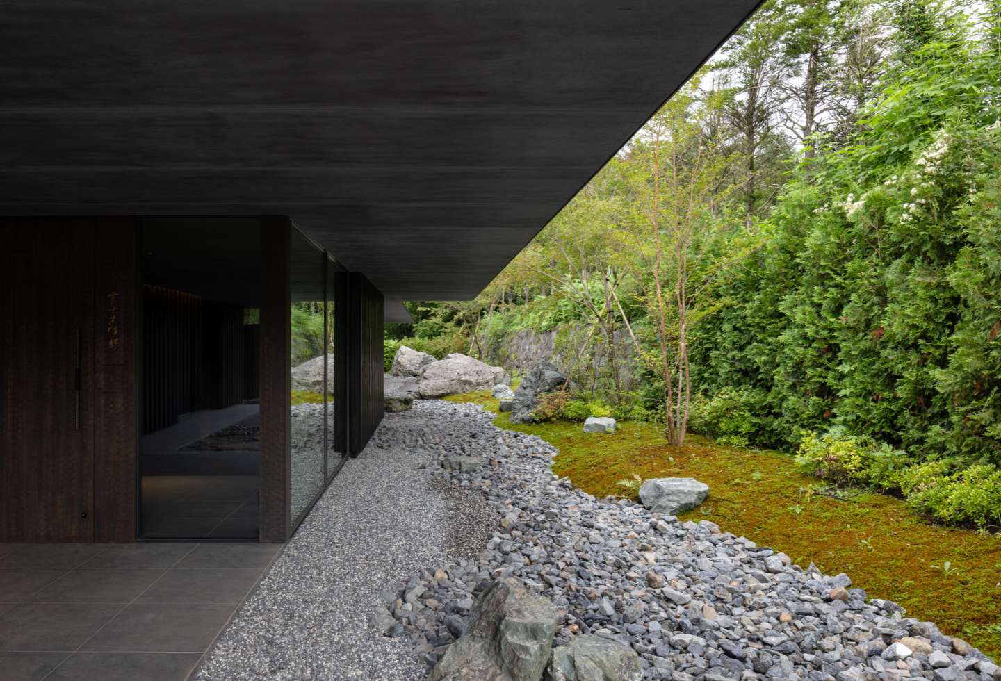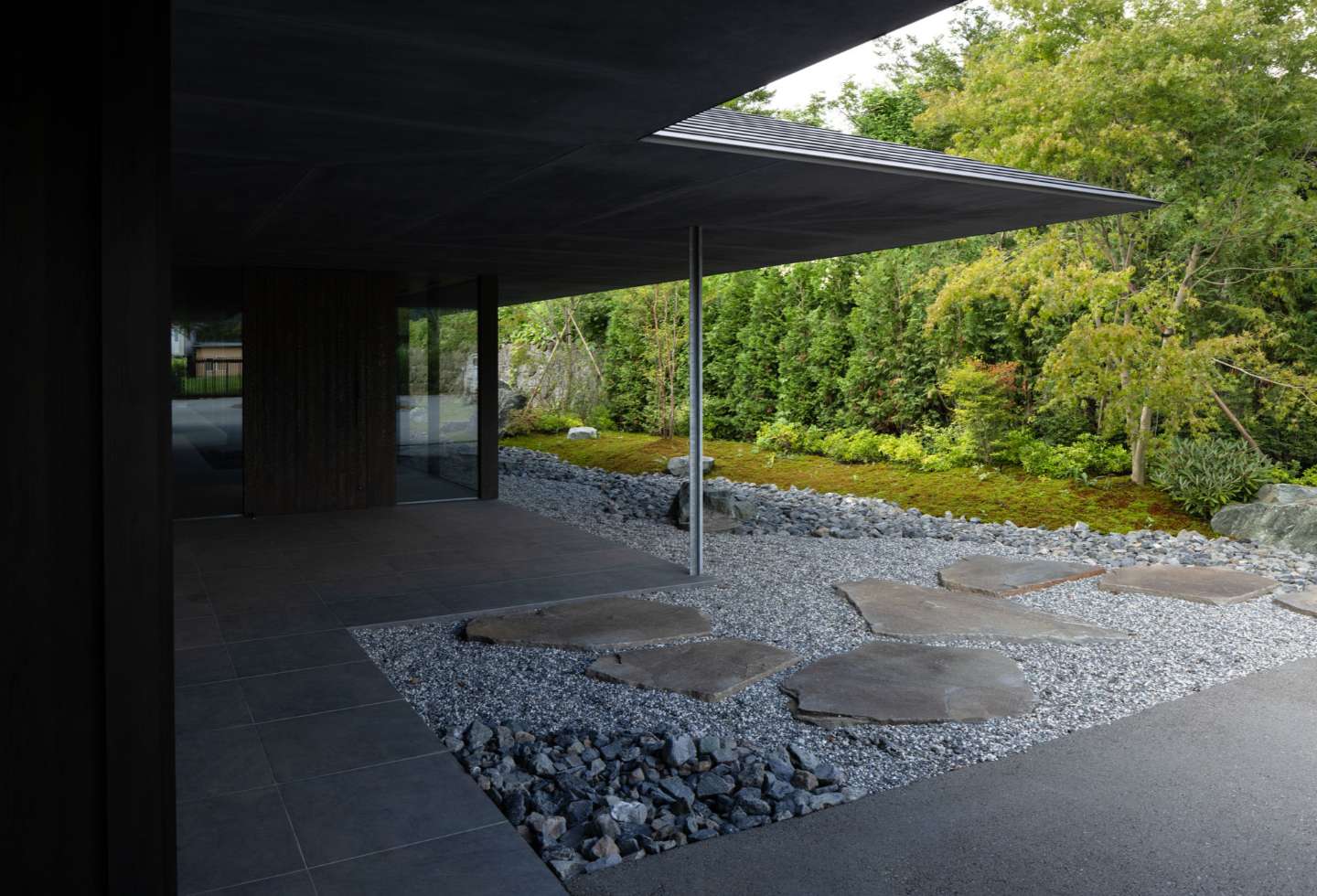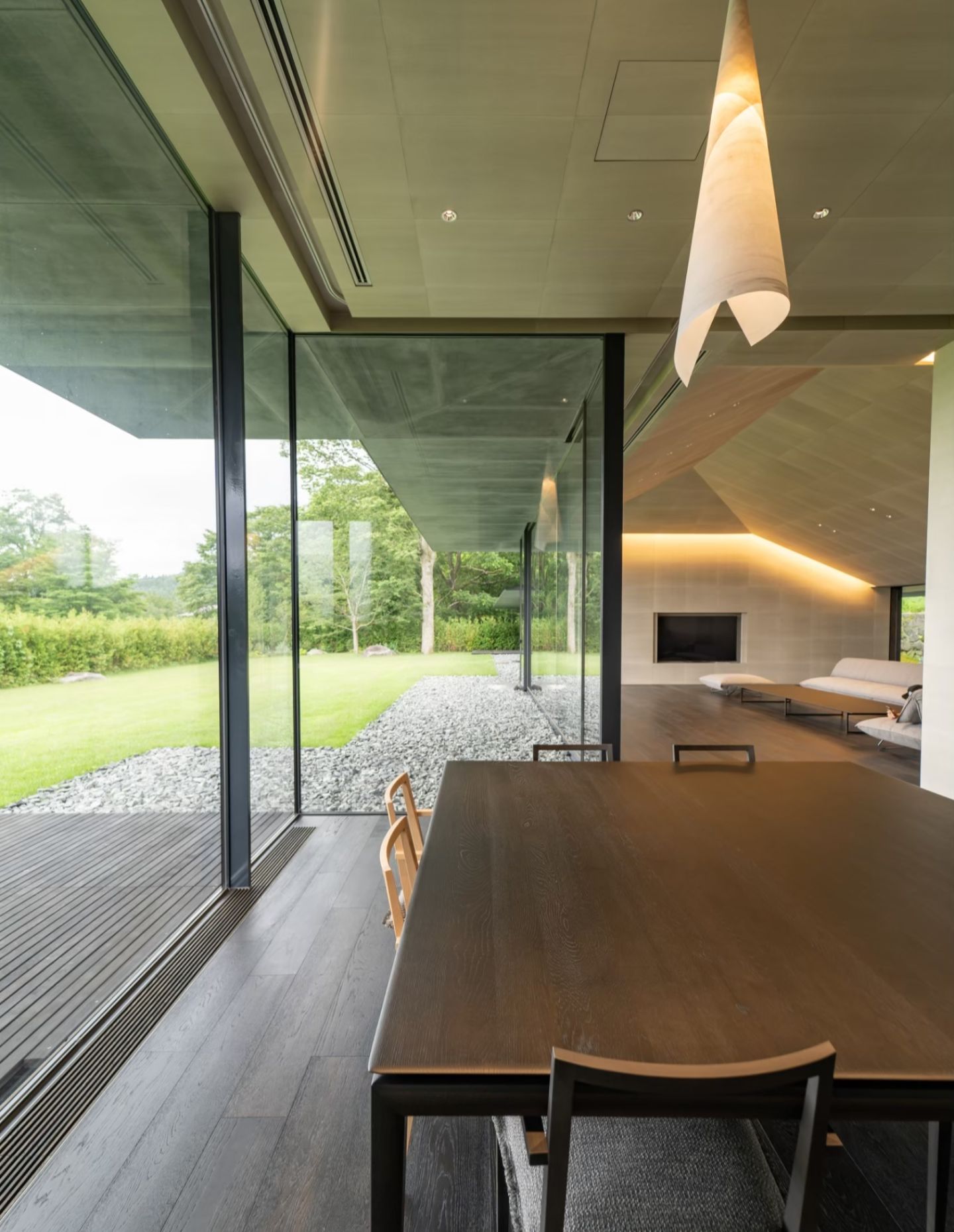 Three main gardens surround the house, with landscaping overseen by KKAA. Coniferous trees were planted around the edge of the property to ensure all-year privacy.