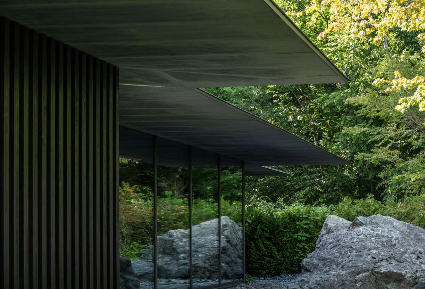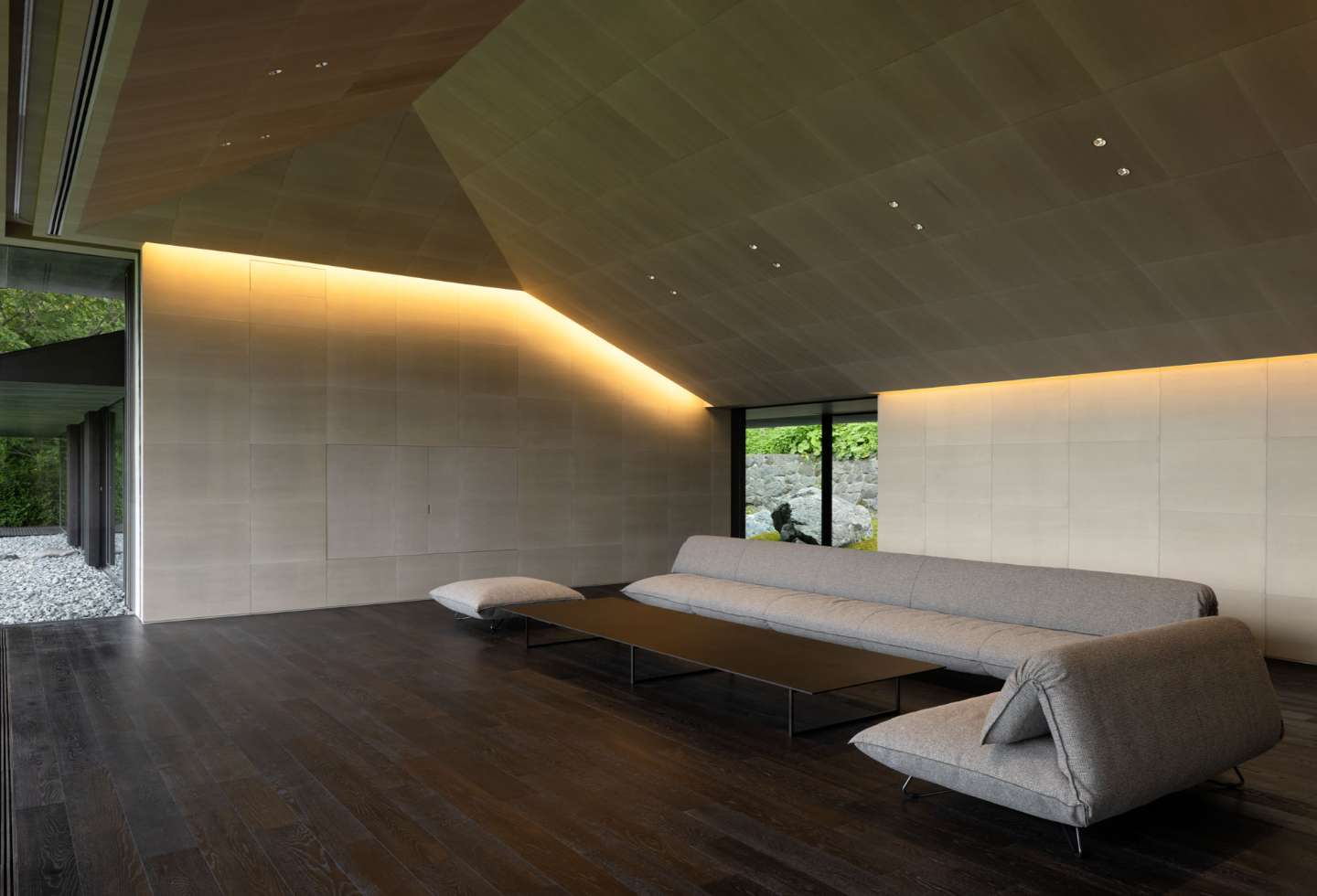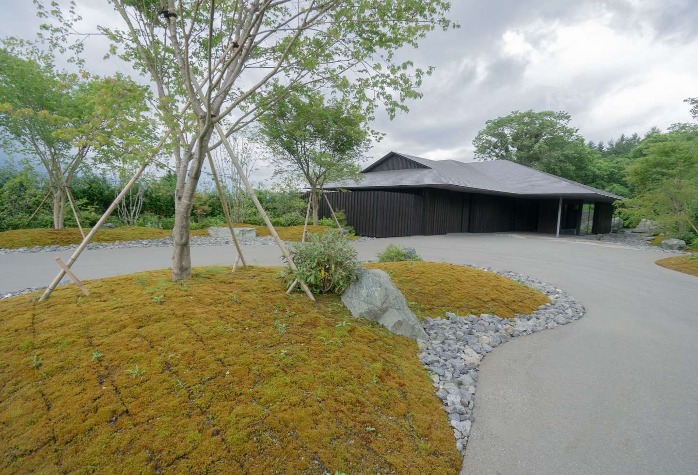 Three main gardens surround the house, with landscaping overseen by KKAA. Coniferous trees were planted around the edge of the property to ensure all-year privacy.