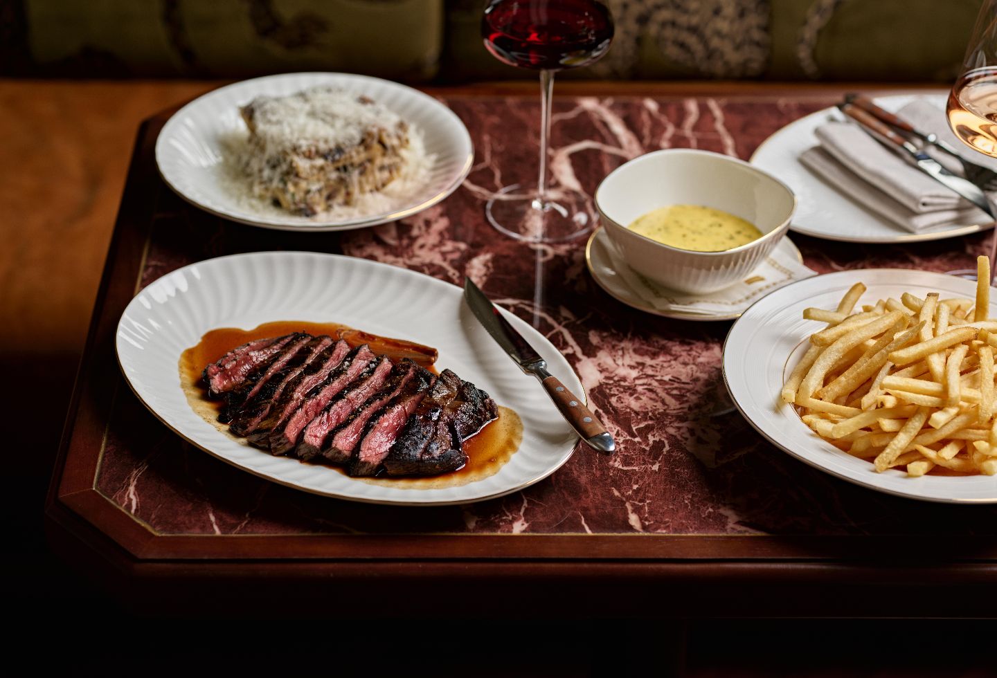 Executive Chef Andrea Grandville’s elegant, cross-continental menu delights with standout dishes including Vincigrassi lasagna – silken pasta layered with mushrooms, prosciutto and truffle in béchamel sauce; a whole flathead in saffron velouté dotted with salmon caviar; and the Bavette à l’échalote steak with pommes frites and an indulgent béarnaise. White-jacketed waiters move seamlessly through the space delivering exceptional, attentive service, while elegant stemware and refined table settings reinforce Dilernia’s attention to detail.