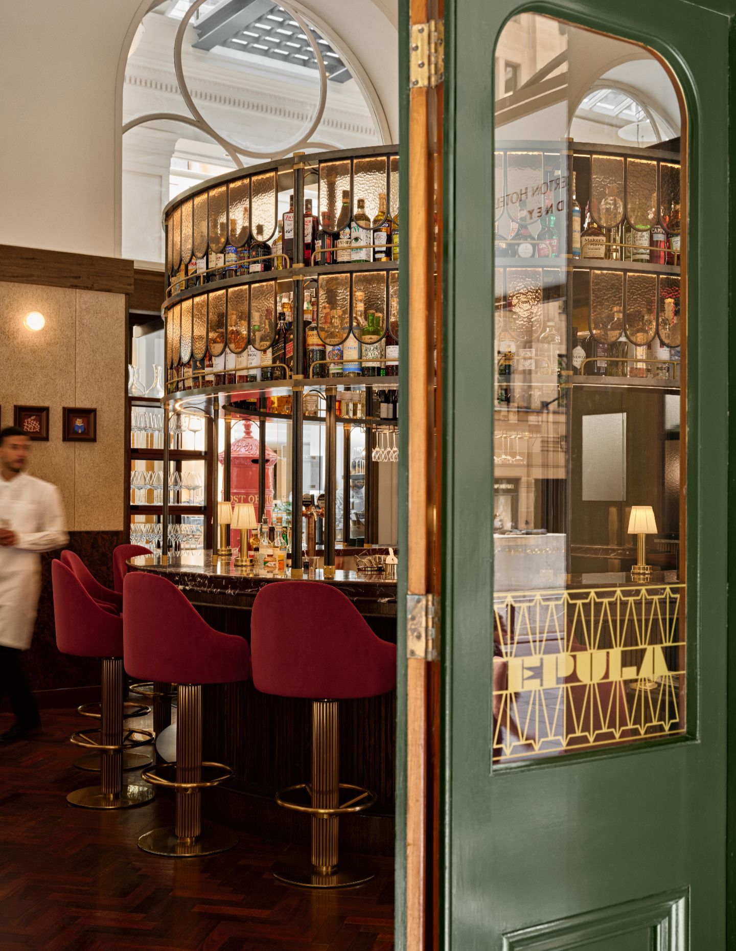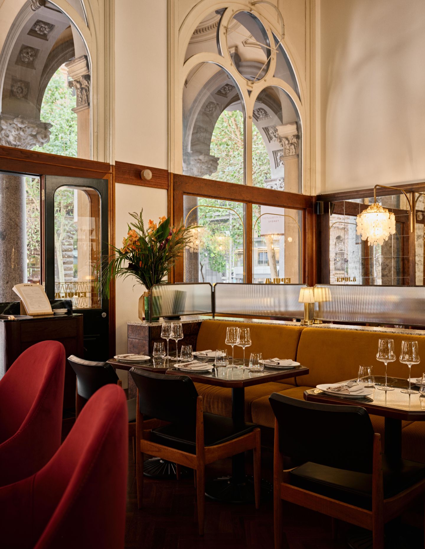 What strikes most about Epula is how effortless it all feels. Krelle states: “In hospitality design, you have to hit markers of acoustics, lighting and mood.” There is a relaxed, welcoming energy – buzzing without being pretentious, quality without ostentation. The design speaks to Luchetti Krelle’s considered approach and the Tapavino Group’s broader sensibility while allowing the GPO Building’s natural opulence to shine. As Krelle reflects, the building’s great bones provided the foundation for layering elegant, luxe details: “Rich reds, caramel mustards, deep sumptuous greens – warmth alongside dark timbers and the velvet adds tactility and sheen.”