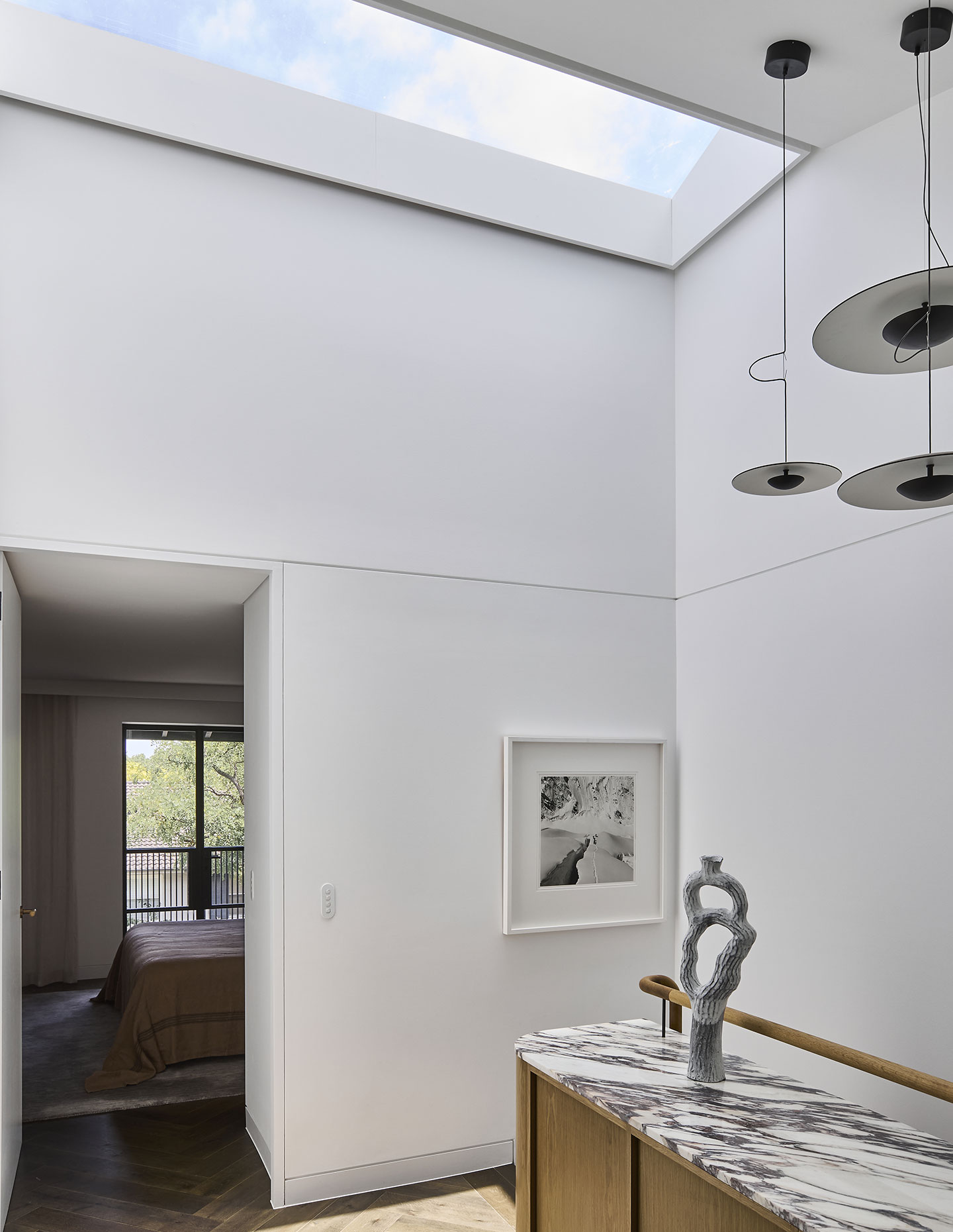 After assessing the roof’s structural layout, the team retransferred loads and introduced full-width skylights, injecting light into previously dark areas.