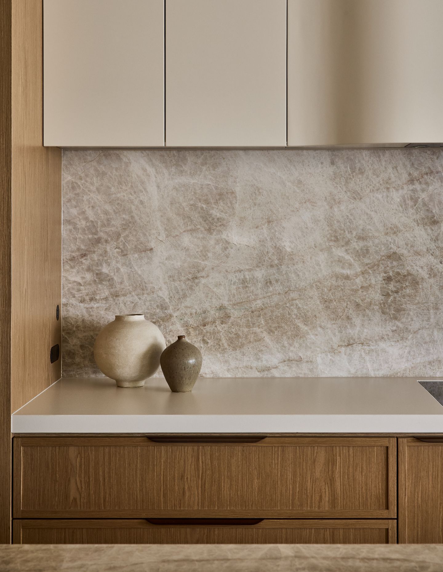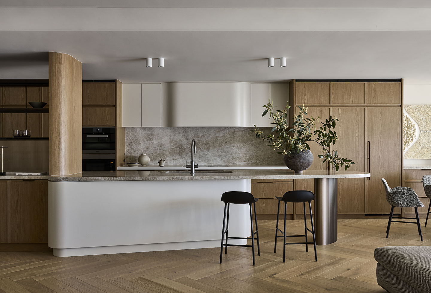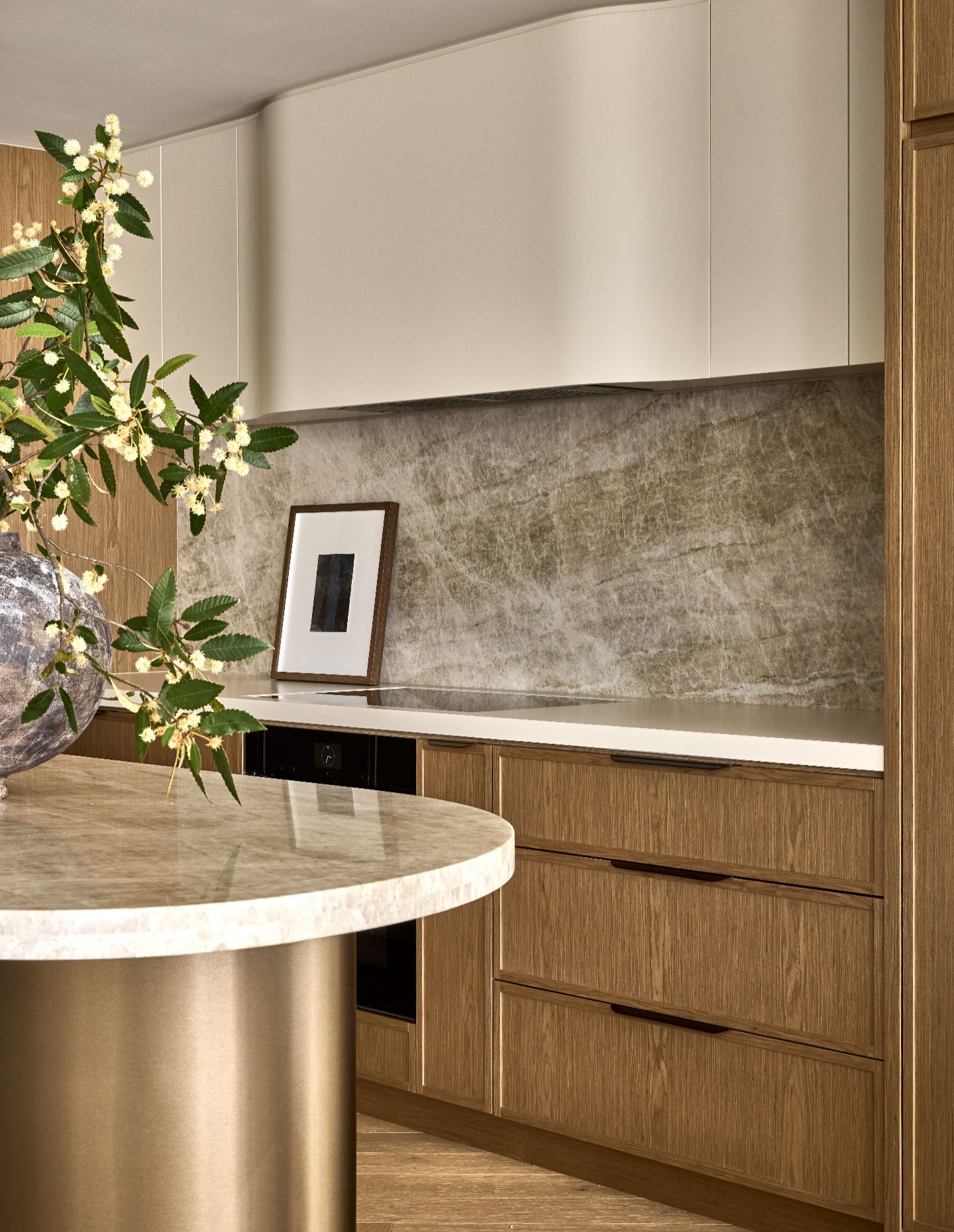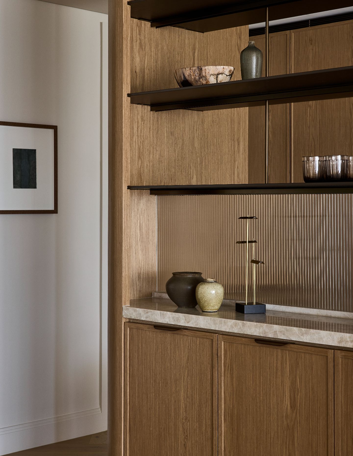 The custom joinery moments are a particular highlight, especially where timber detailing, metal accents and stone intersect seamlessly. These restrained junctions create depth and richness without spectacle.