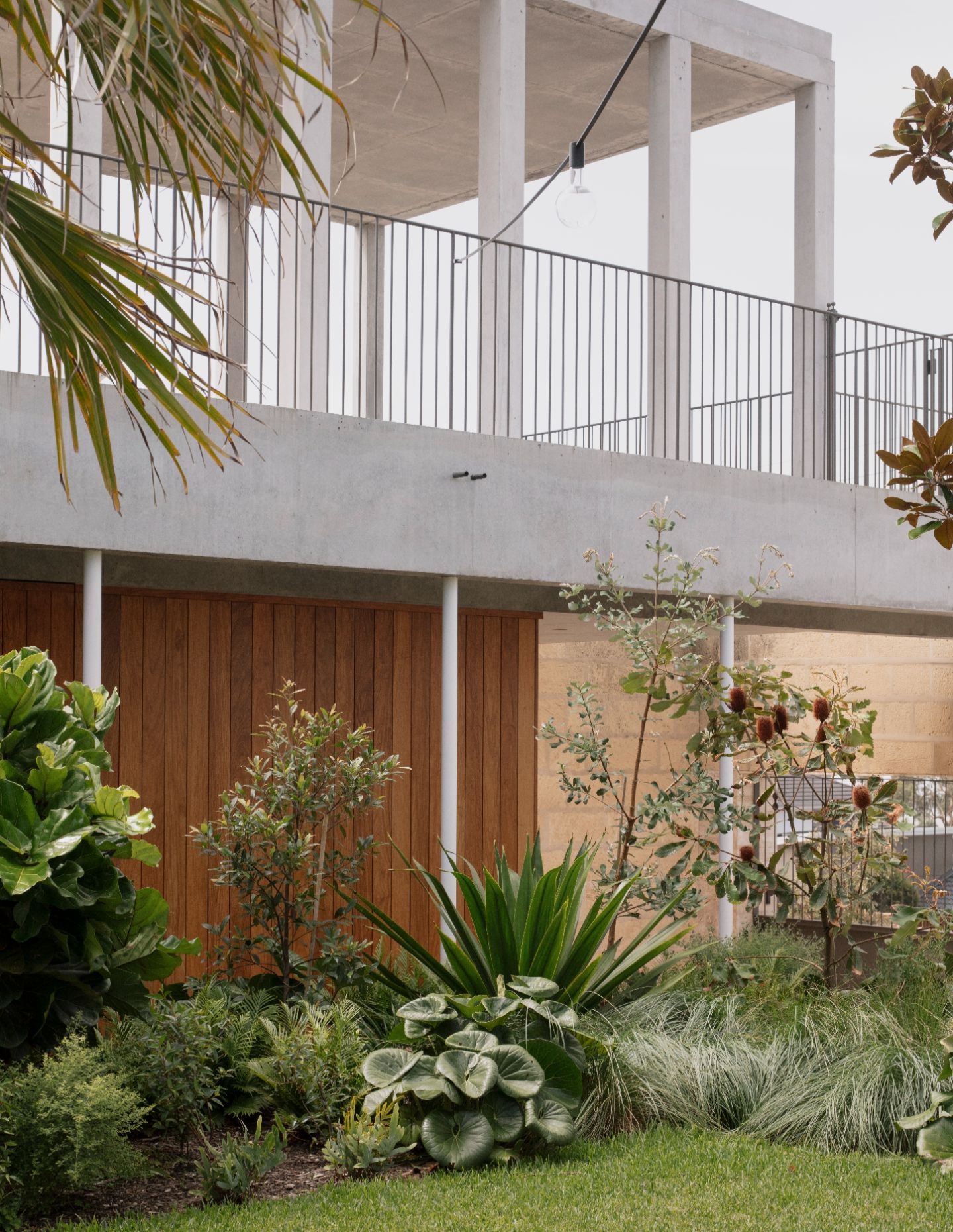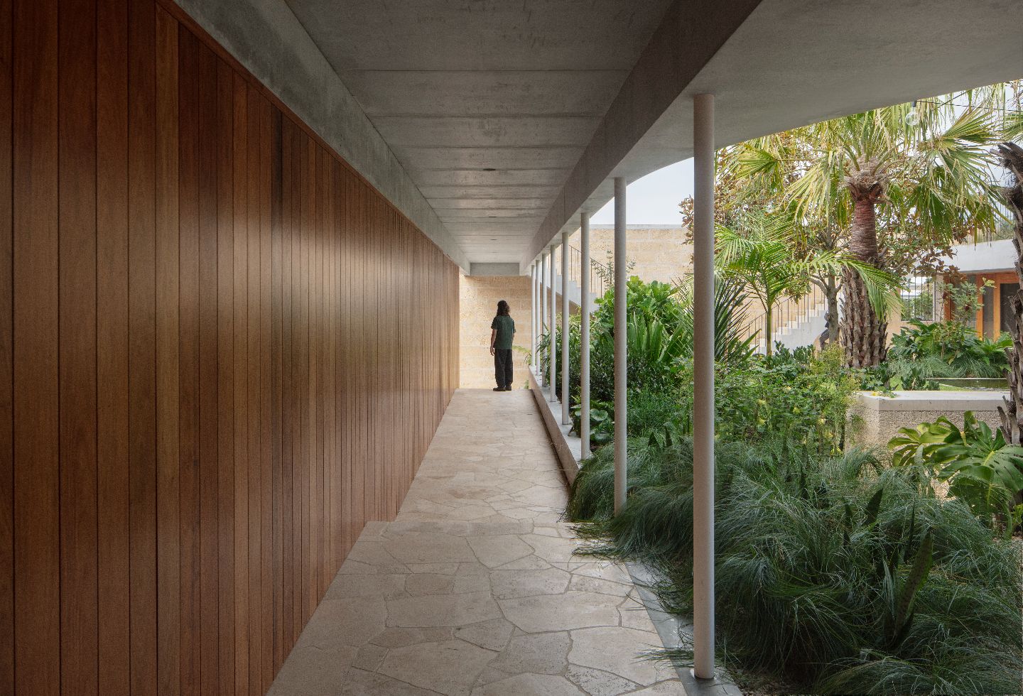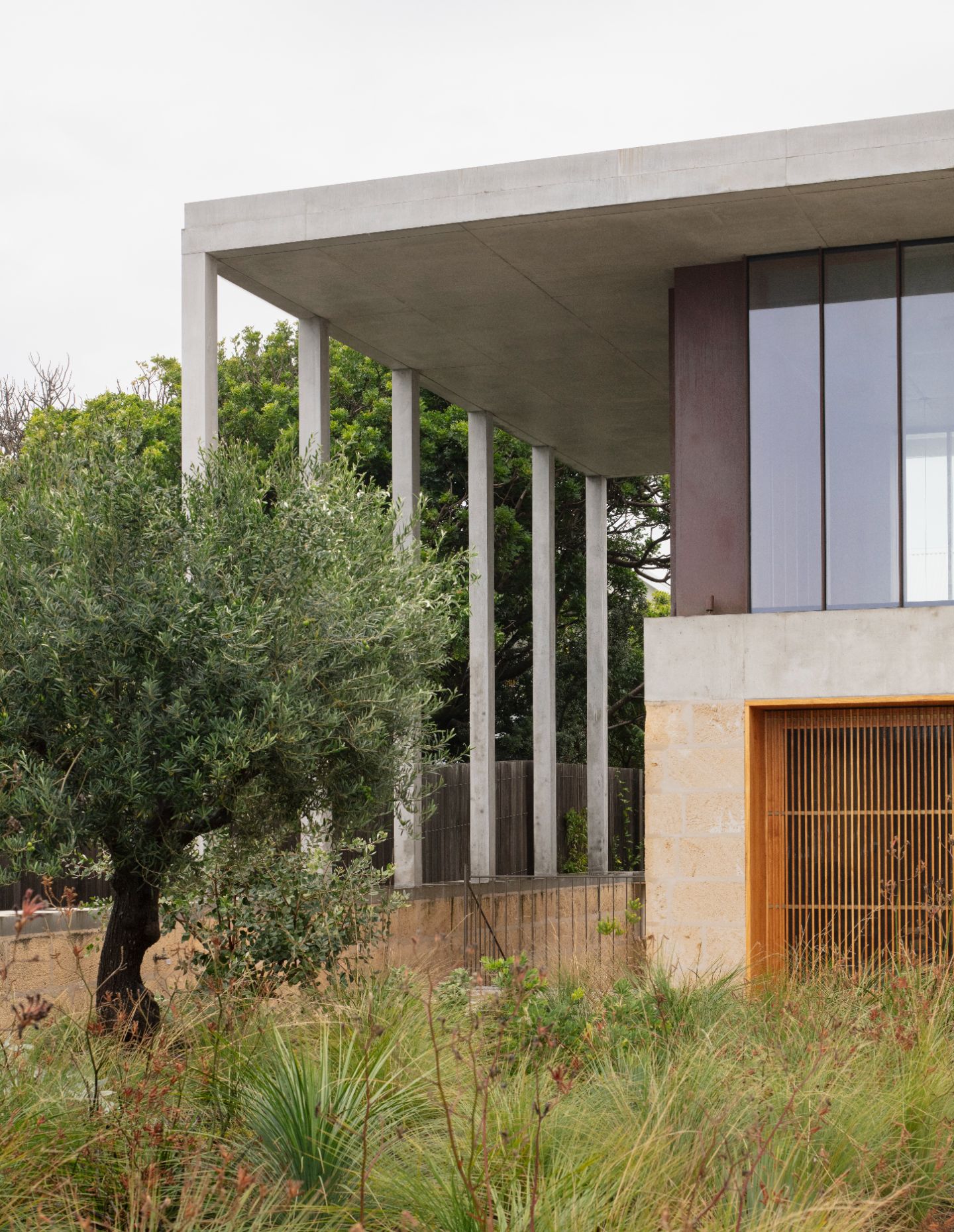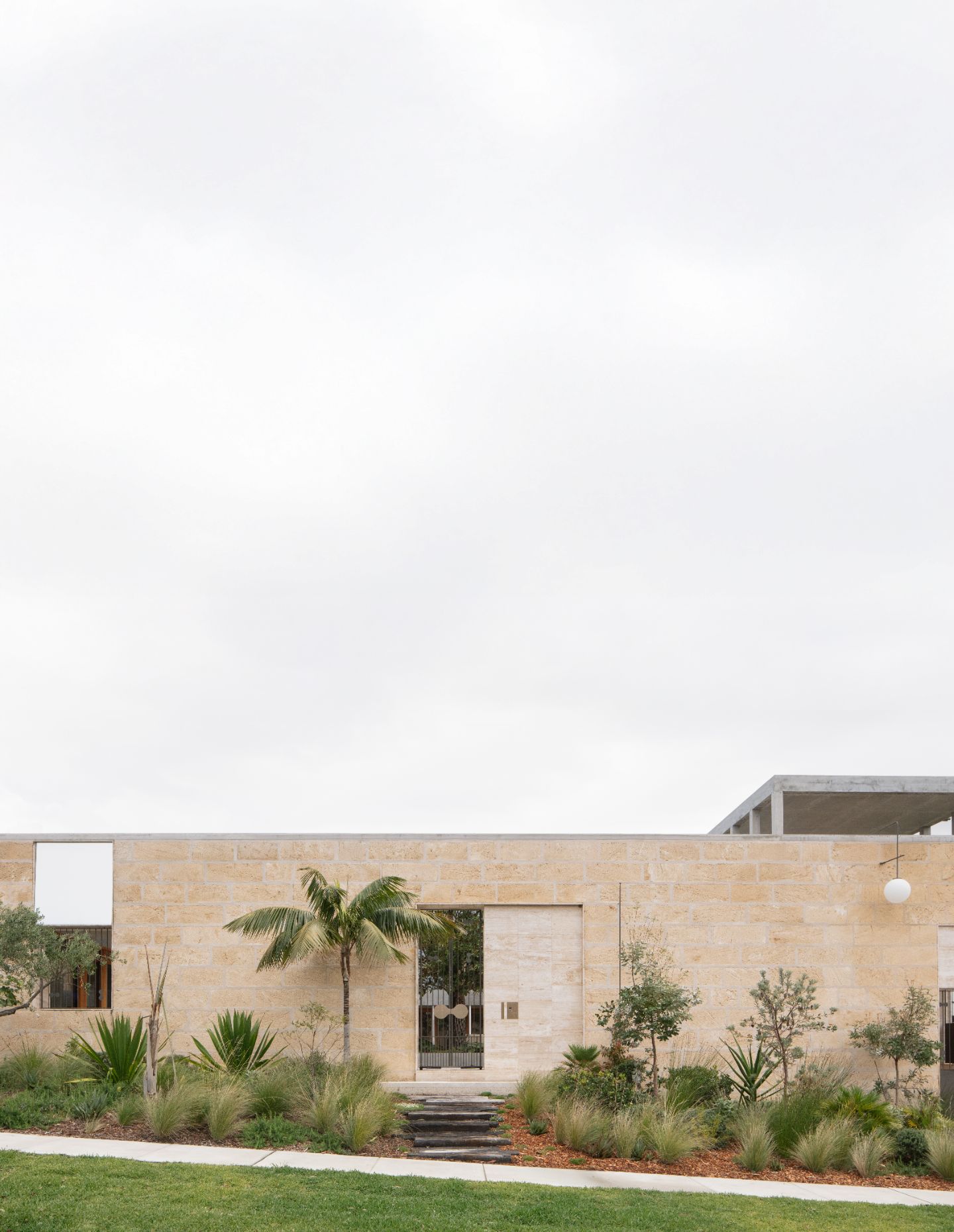 “I intentionally wanted the project to appear otherworldly and intriguing,” says Parsons. “This was achieved by creating uncanny scales and proportions, and using vaguely familiar materials – such as non-native limestone and raw concrete – in unexpected ways, like the thin in-situ poured concrete columns that are at a height that doesn’t entirely make sense.”